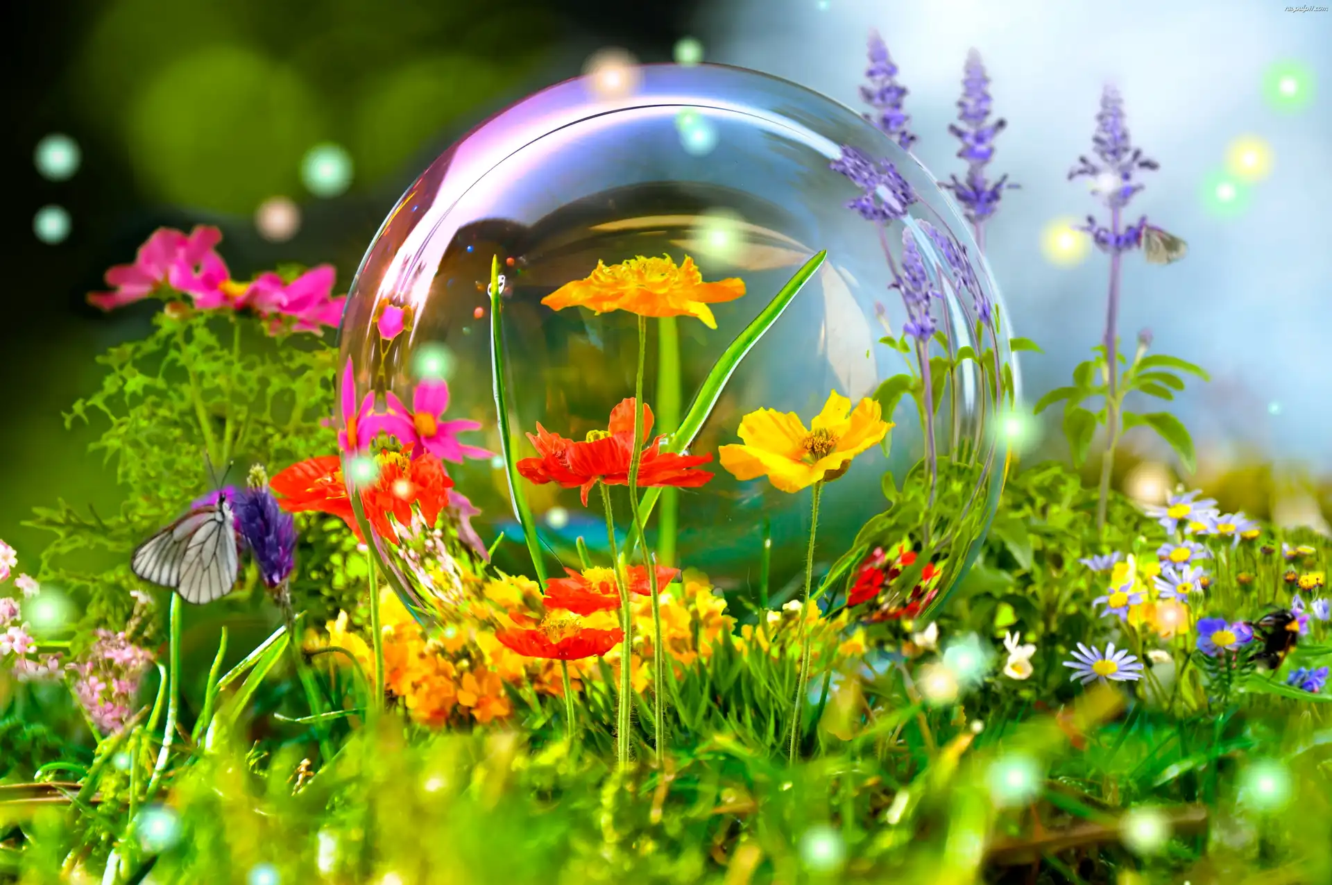 Motyl, Polne, Bańka, Kwiaty