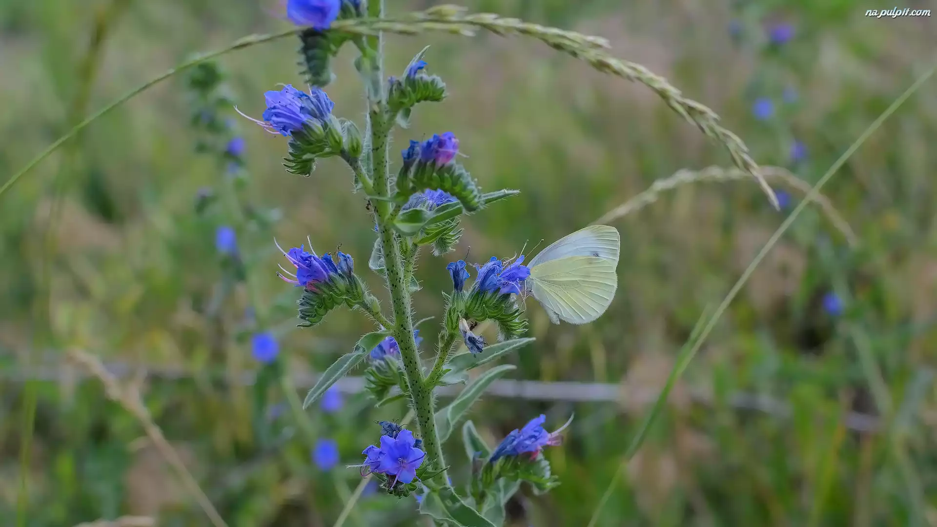 Kwiaty, Motyl, Bielinek rzepnik, Trawa Na Pulpit