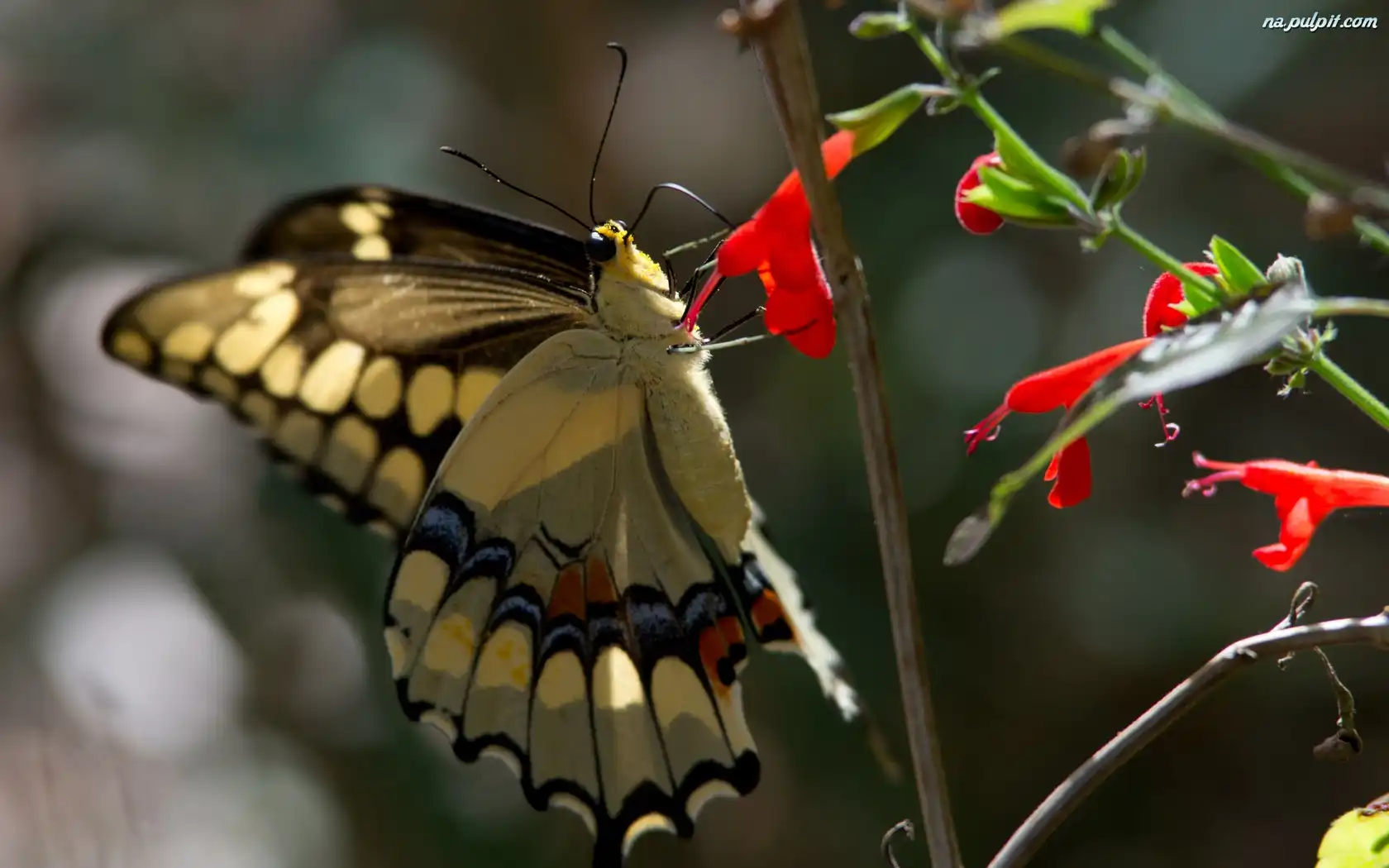 Motyl, Kwiatuszki, Czerwone, Roślinka Na Pulpit