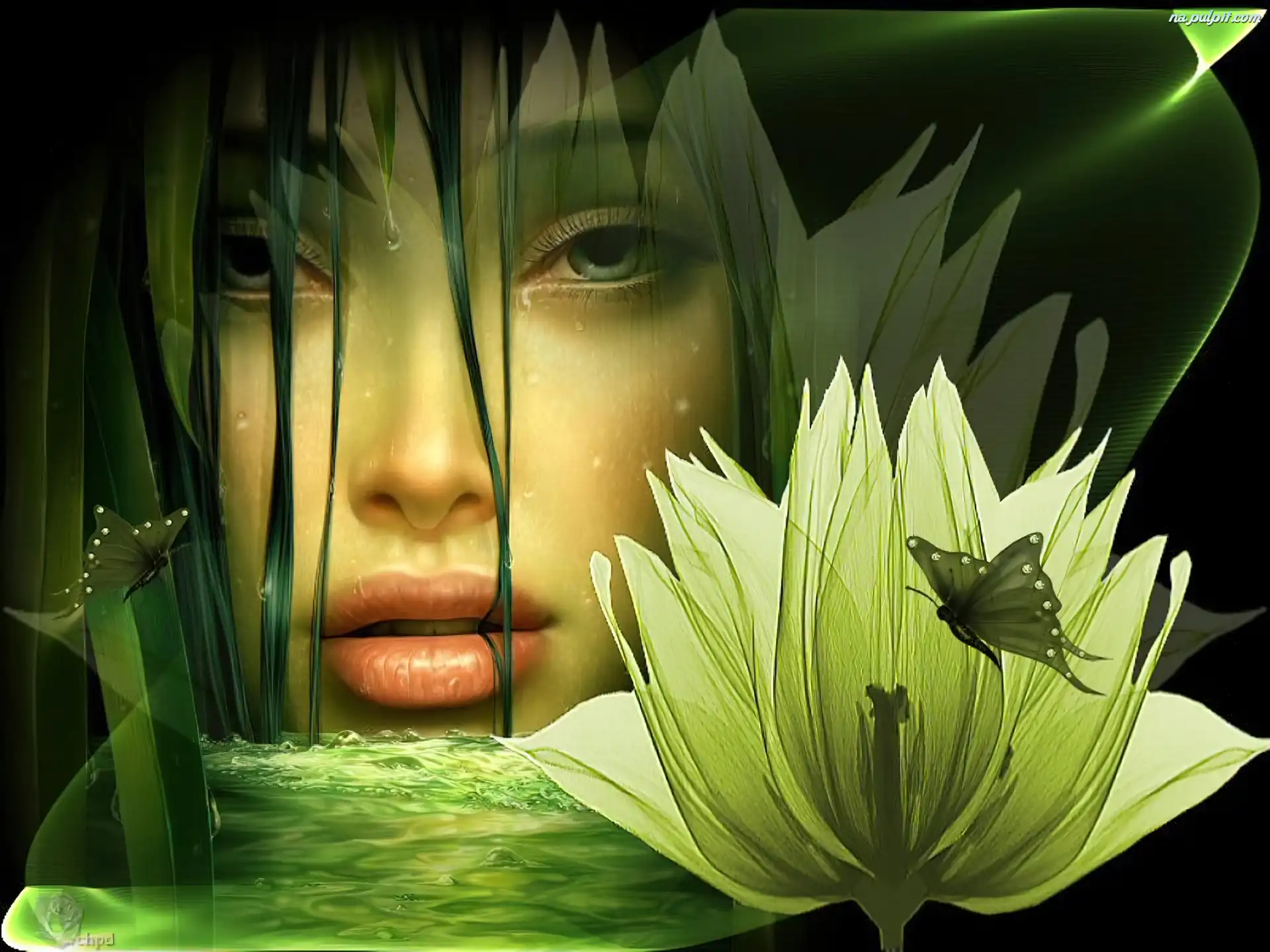 Motyl, Woda, Dziewczyna, Kwiat Na Pulpit
