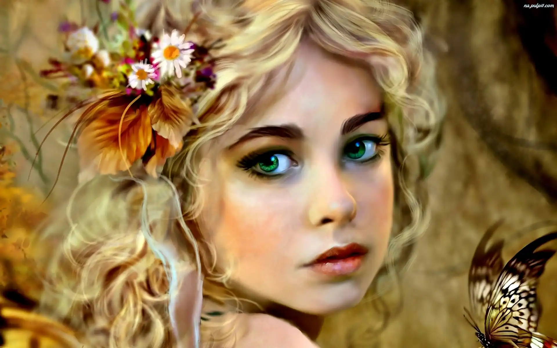 Motyl, Zielone, Dziewczyna, Oczy Na Pulpit