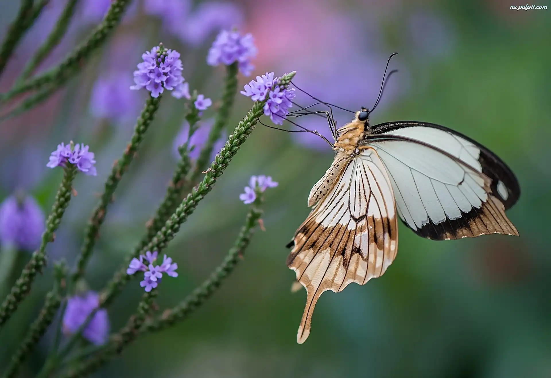 Kwiatki, Motyl, Fioletowe Na Pulpit