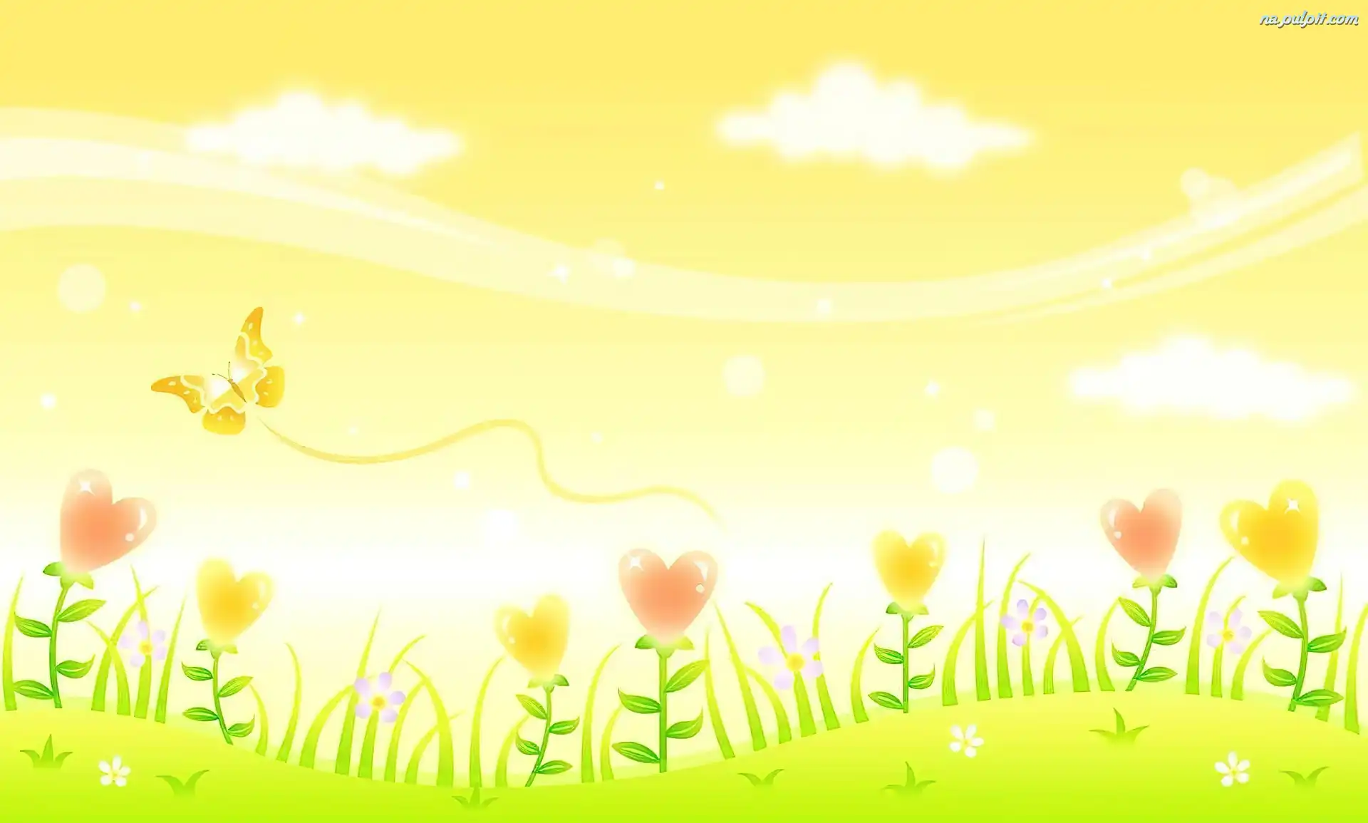Motyle, Kwiaty, Łąka, Serca Na Pulpit