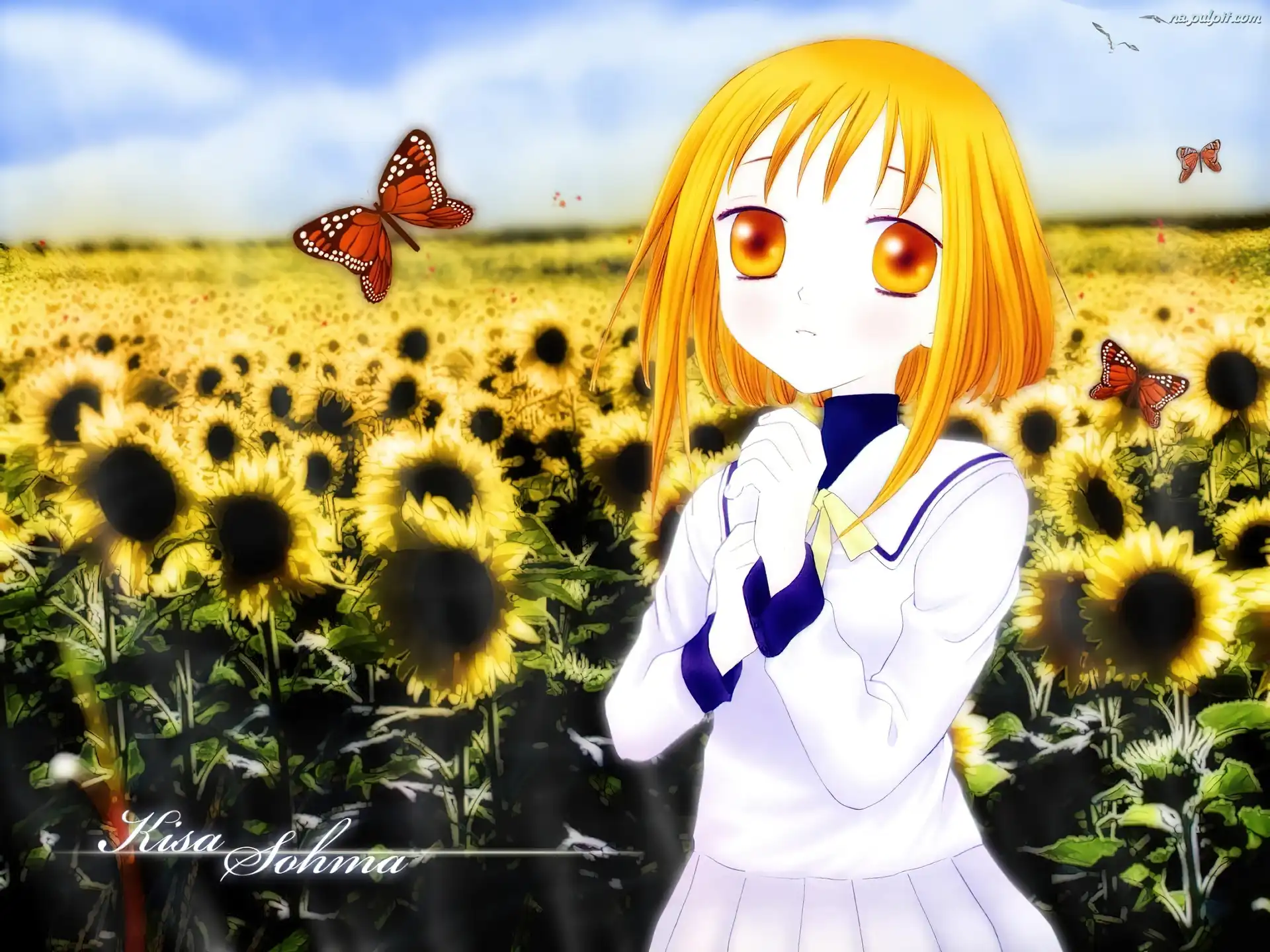 Fruits Basket, dziewczyna, polana, motyle Na Pulpit