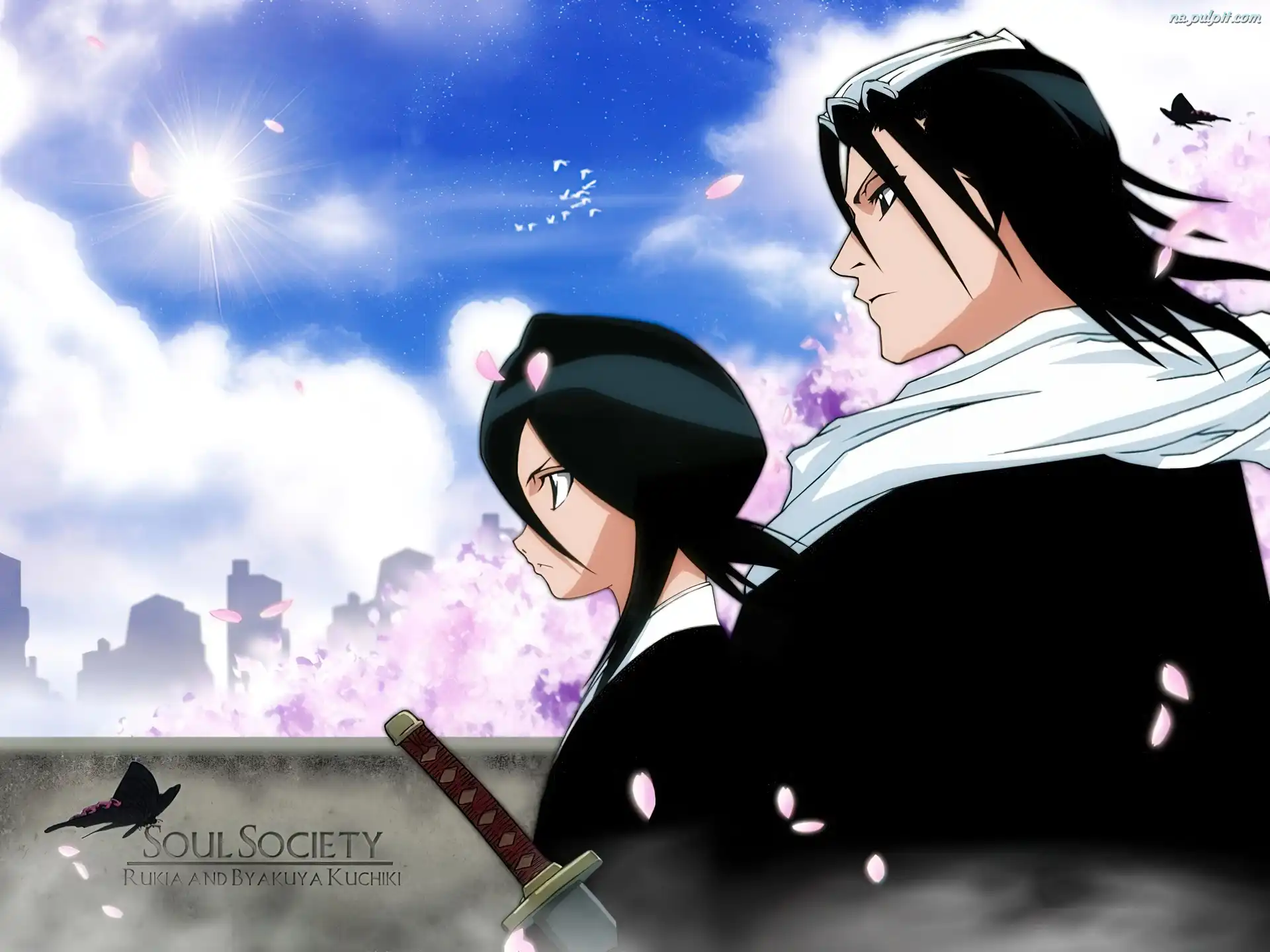 motyle, napis, Bleach, ludzie Na Pulpit