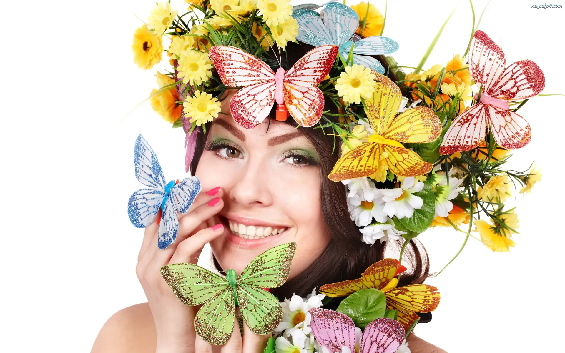 Motyle, Makijaż, Kobieta, Kwiatki Na Pulpit