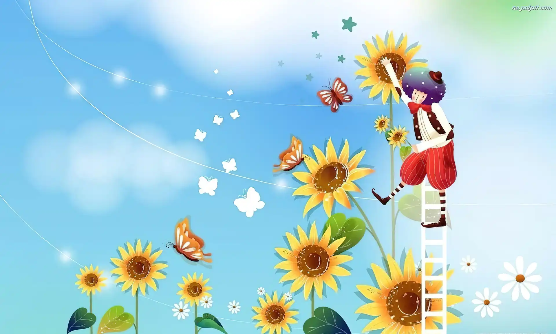 Motyle, Drabina, Słoneczniki, Pajacyk