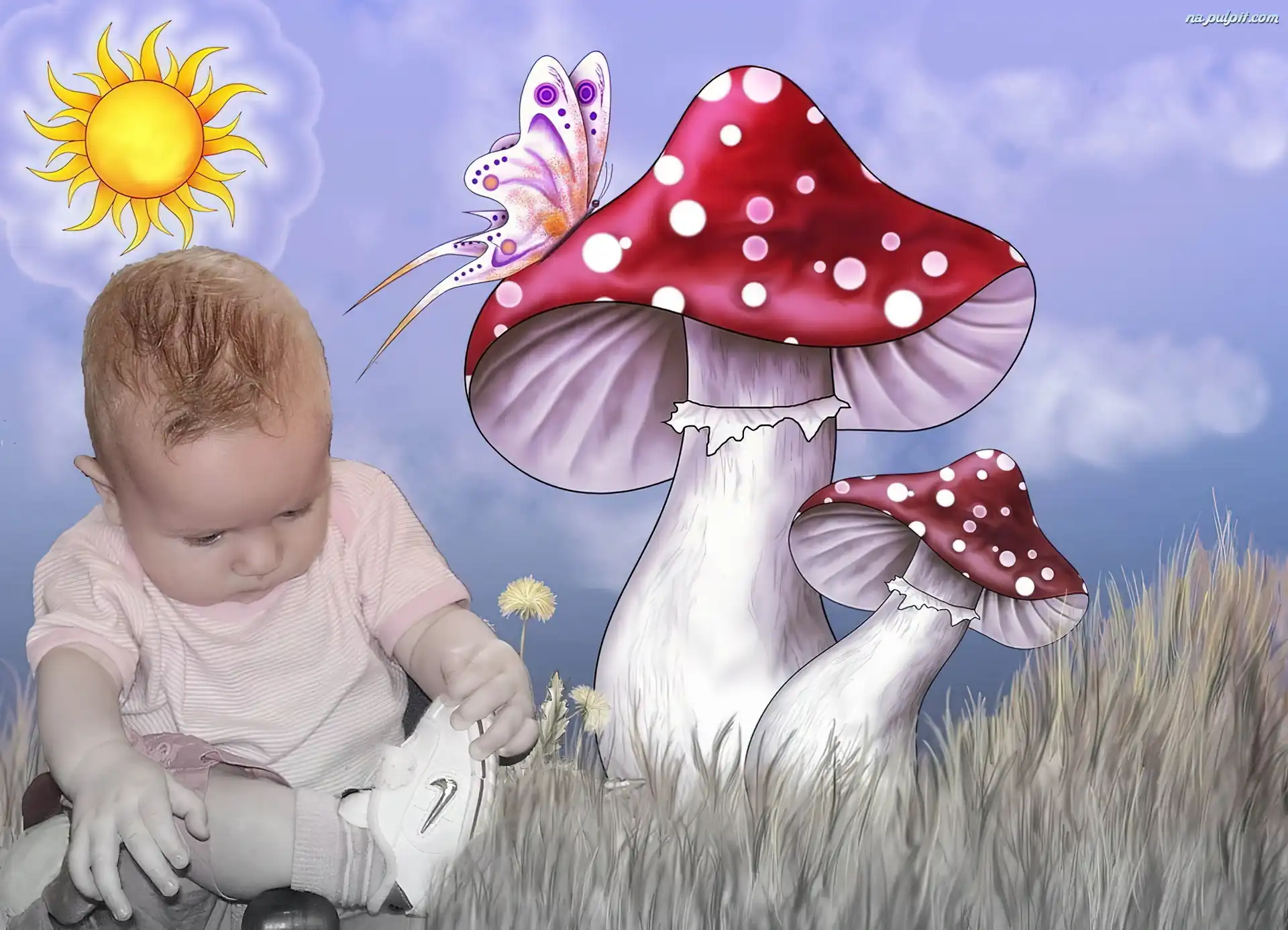 Motylek, Dziecko, Małe, Muchomorki Na Pulpit