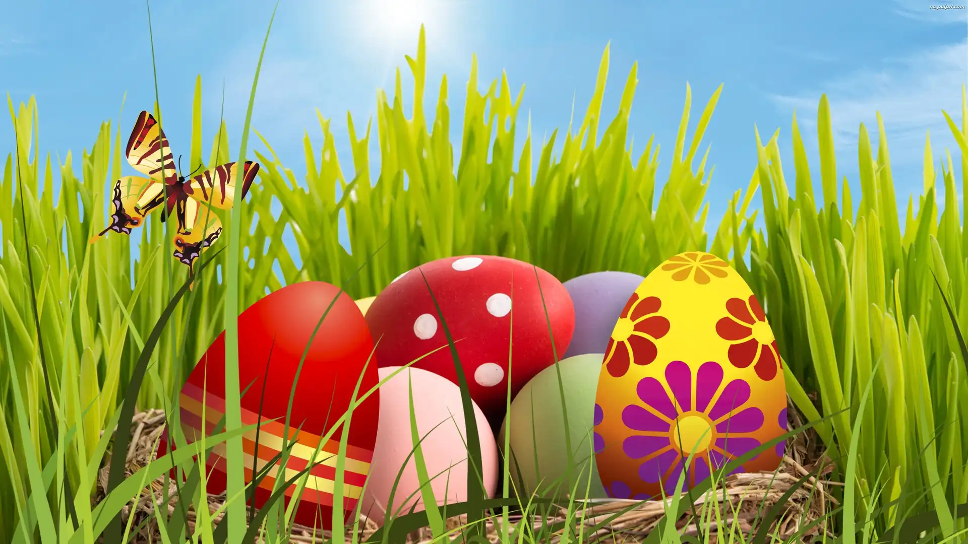 Motylek, Koszyczek, Pisanki, Wielkanoc, Trawka Na Pulpit