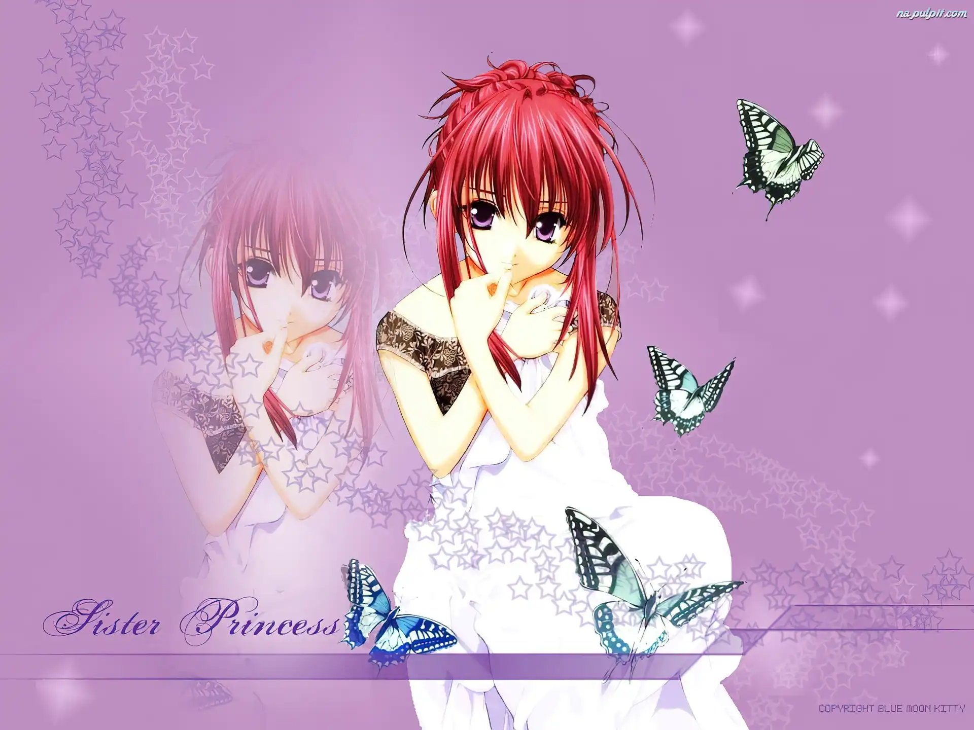 motylki, Sister Princess, czerwone włosy Na Pulpit