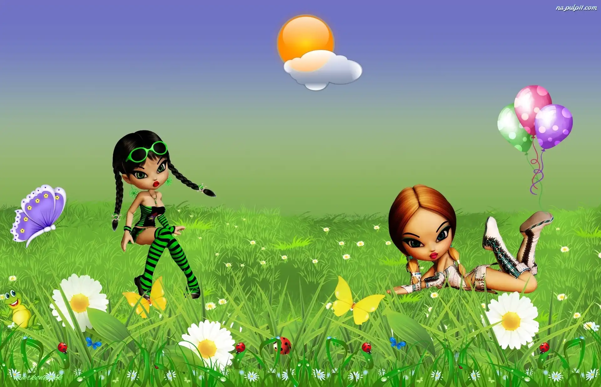Motylki, Łąka, Grafika, Kwiaty Na Pulpit