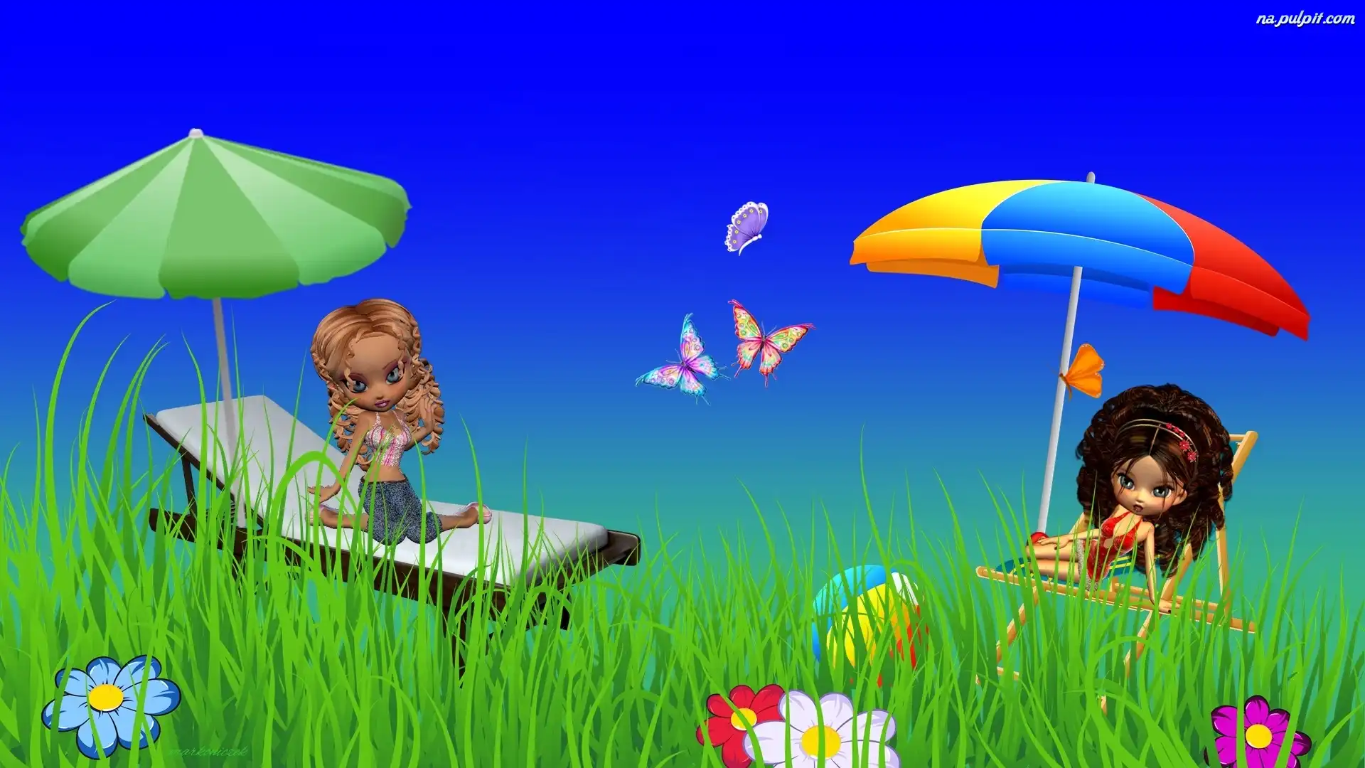 Motylki, Parasole, Leżaki, Grafika, Kwiaty Na Pulpit