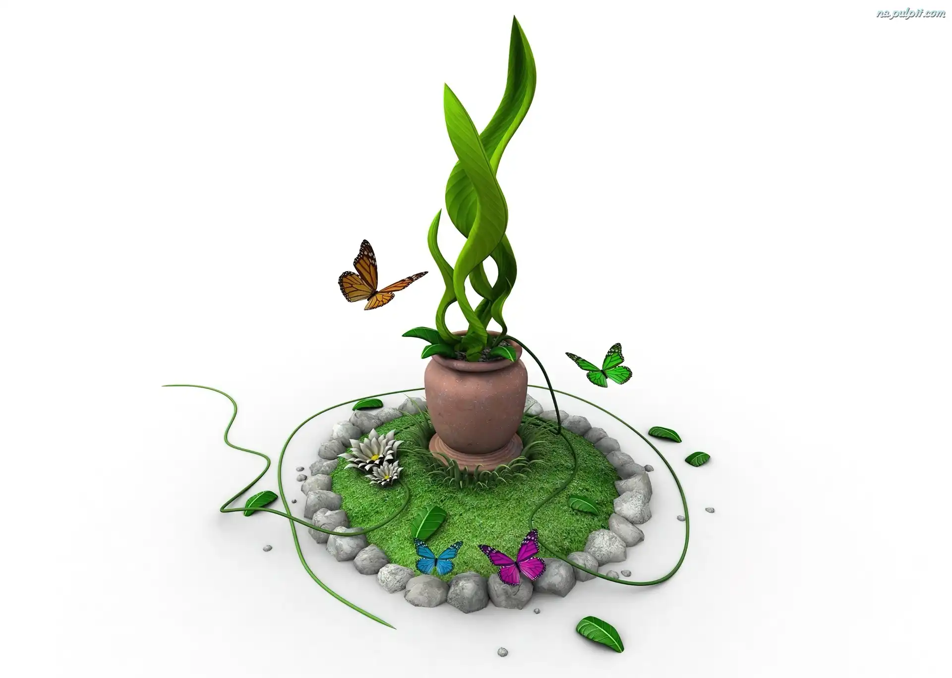 Motylki, Roślina, Zielona, Doniczka Na Pulpit