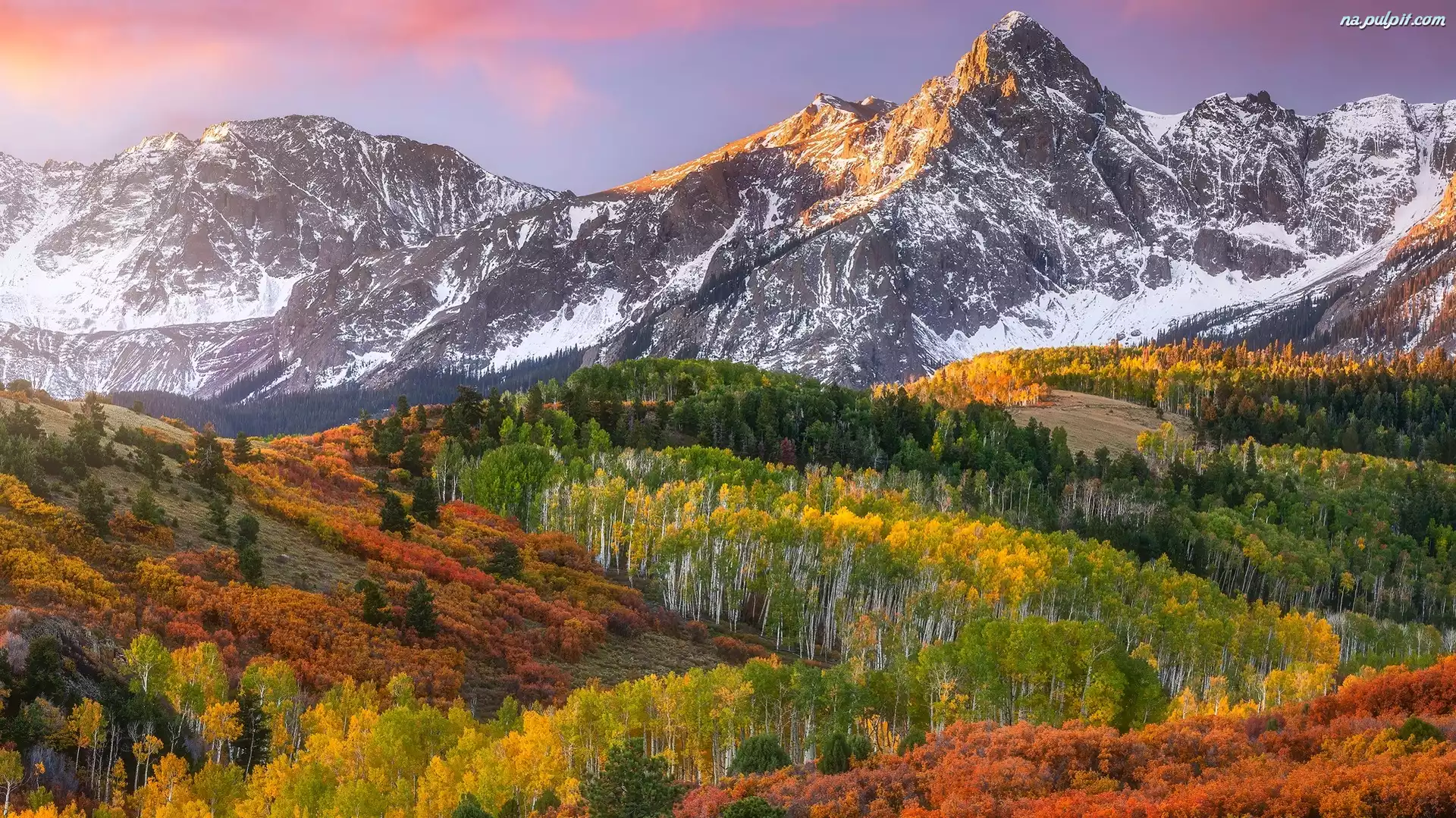 Mount Sneffels, Góry, Jesień, Stany Zjednoczone, Roślinność, Drzewa, Kolorado, Góra Na Pulpit