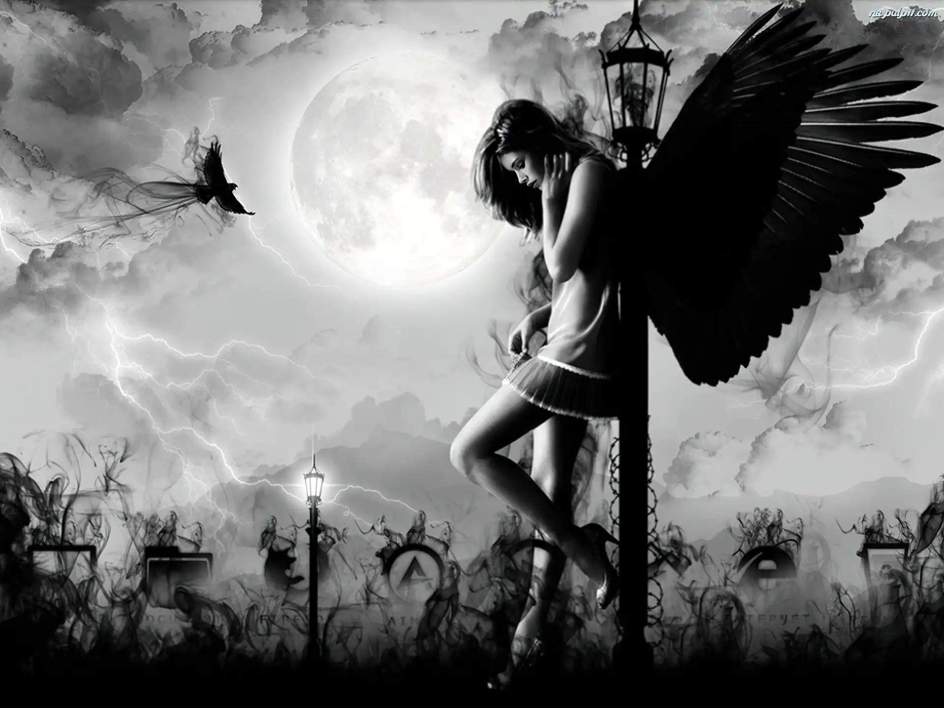 Mroczne, Anioł, Kobieta, Skrzydła