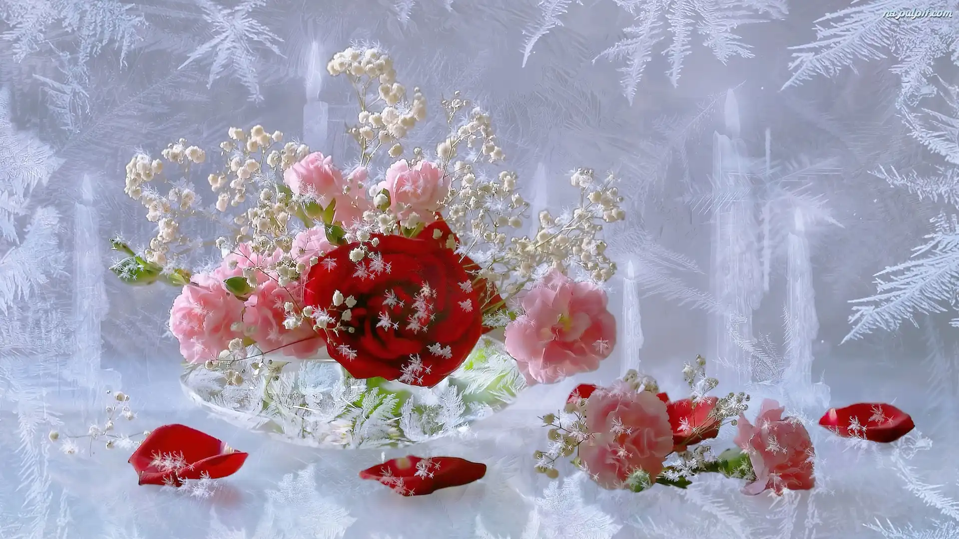 Mróz, Kwiatów, Bukiet, Szyba Na Pulpit
