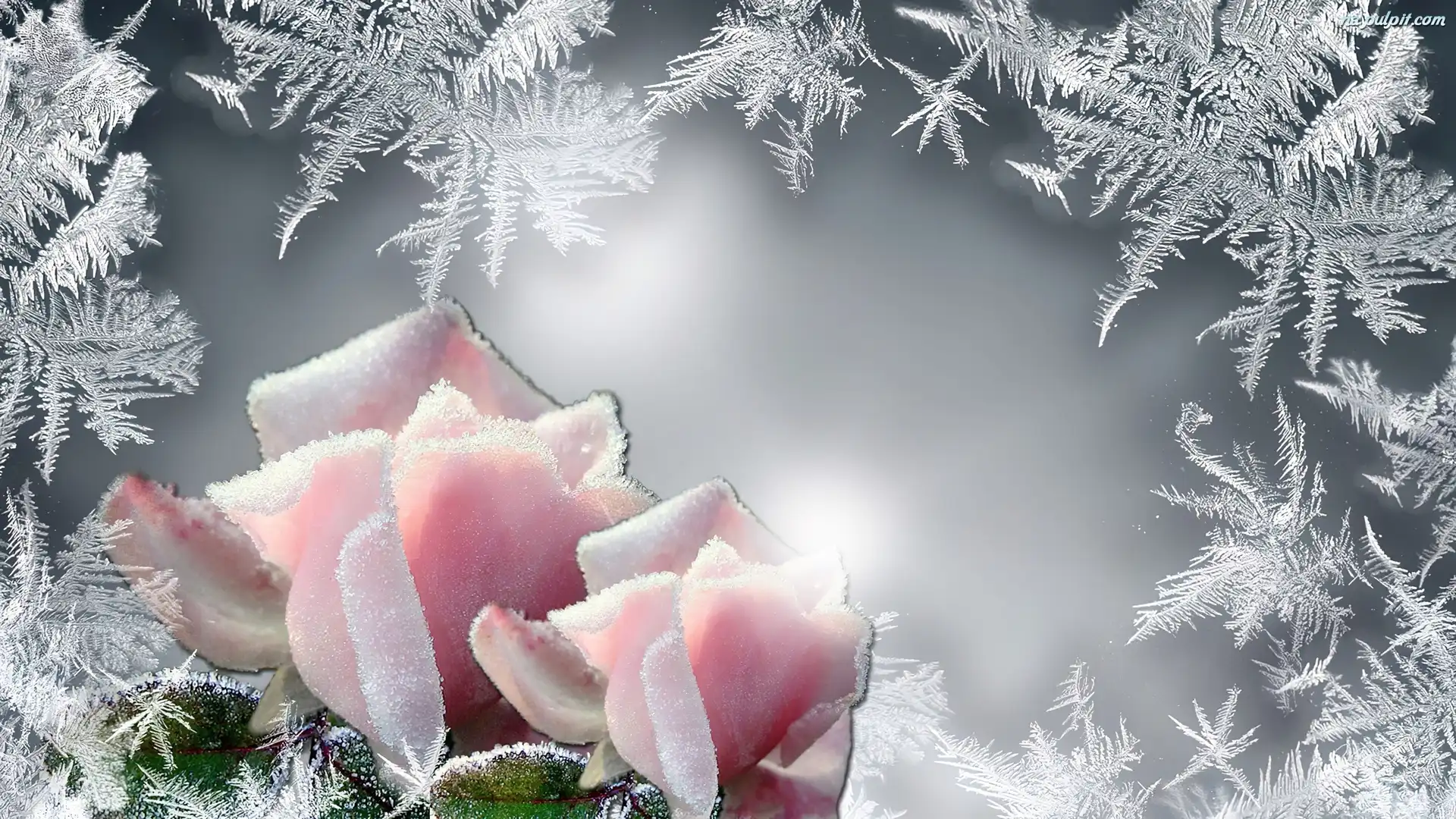 Mróz, Różowe, Oszronione, Róże Na Pulpit
