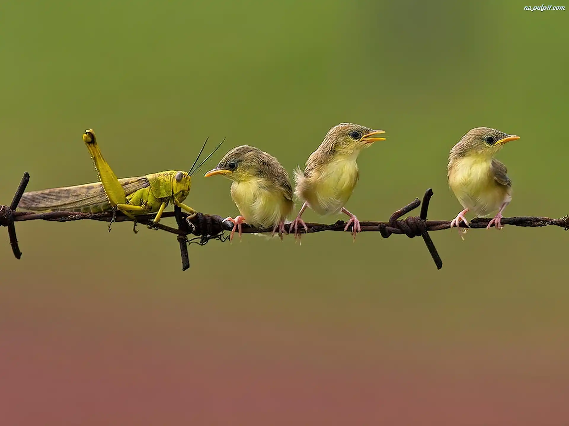 Muchołówki, Ptaki, Owad, Pasikonik, Pisklęta Na Pulpit
