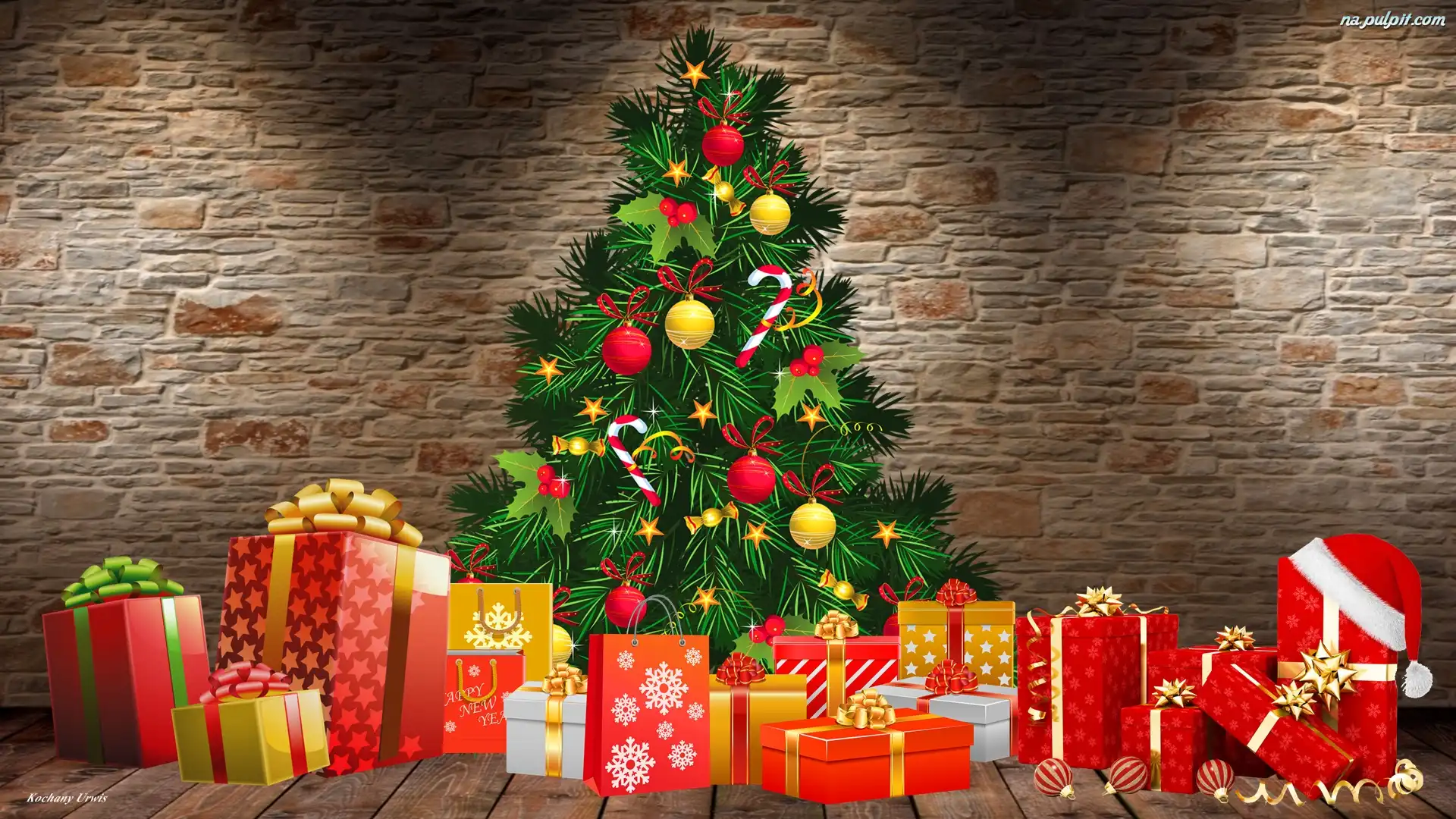 Mur, Choinka, Boże Narodzenie, Prezenty