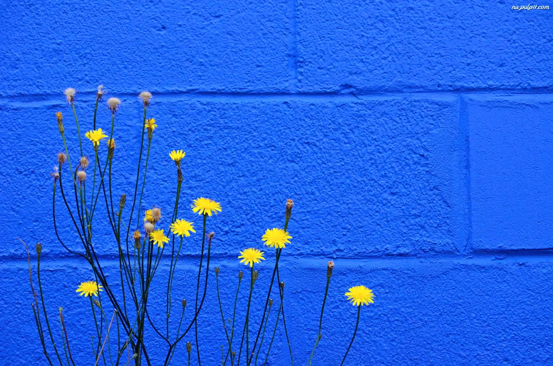 Mur, Prosienicznik, Kwiatki, Żółte, Niebieski