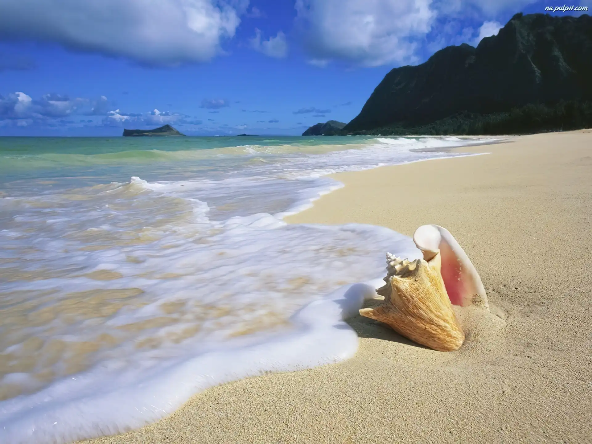 Muszelka, Woda, Hawaje, Oahu, Plaża Na Pulpit