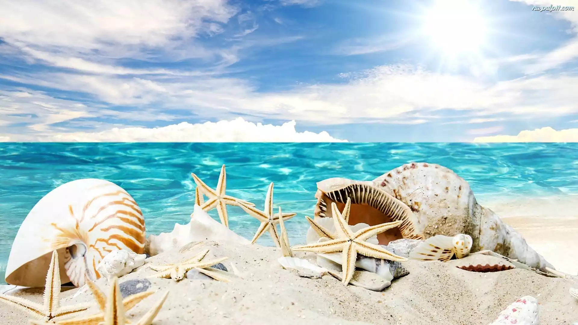 Muszelki, Plaża, Morze, Grafika, Piasek Na Pulpit