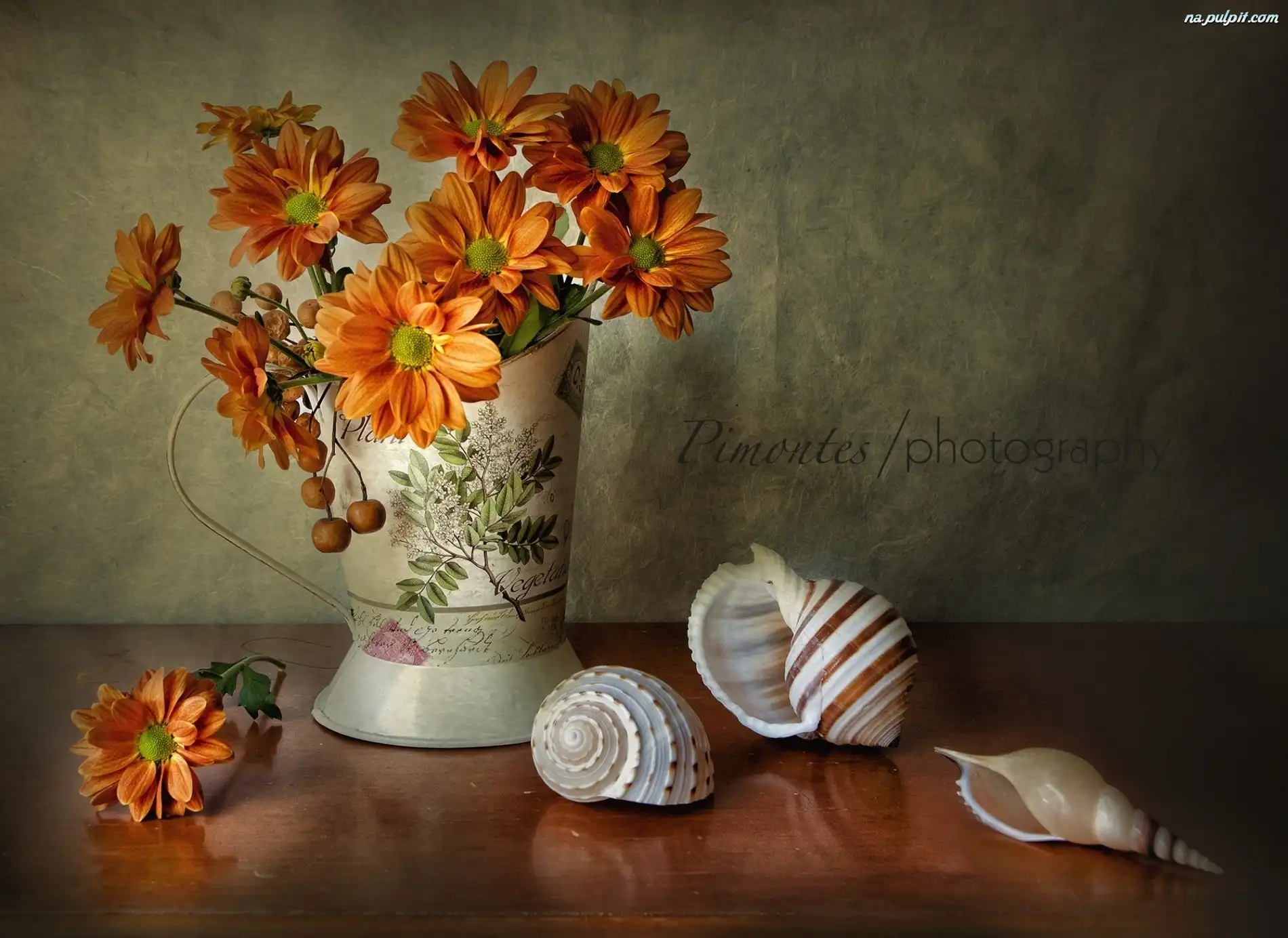 Muszelki, Margerytki, Kompozycja, Wazon Na Pulpit