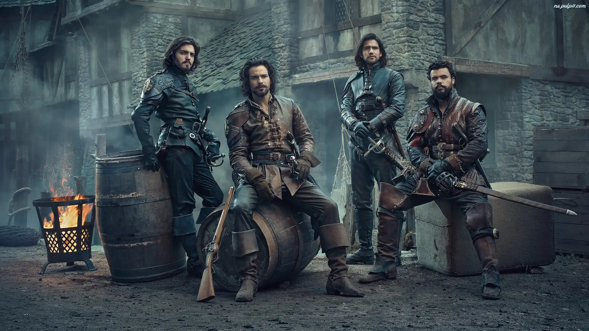 Muszkieterowie, Tom Burke, Howard Charles, The Musketeers, Atos, Luke Pasqualino, Portos, D Artagnan, Aramis, Serial, Santiago Cabrera Na Pulpit |