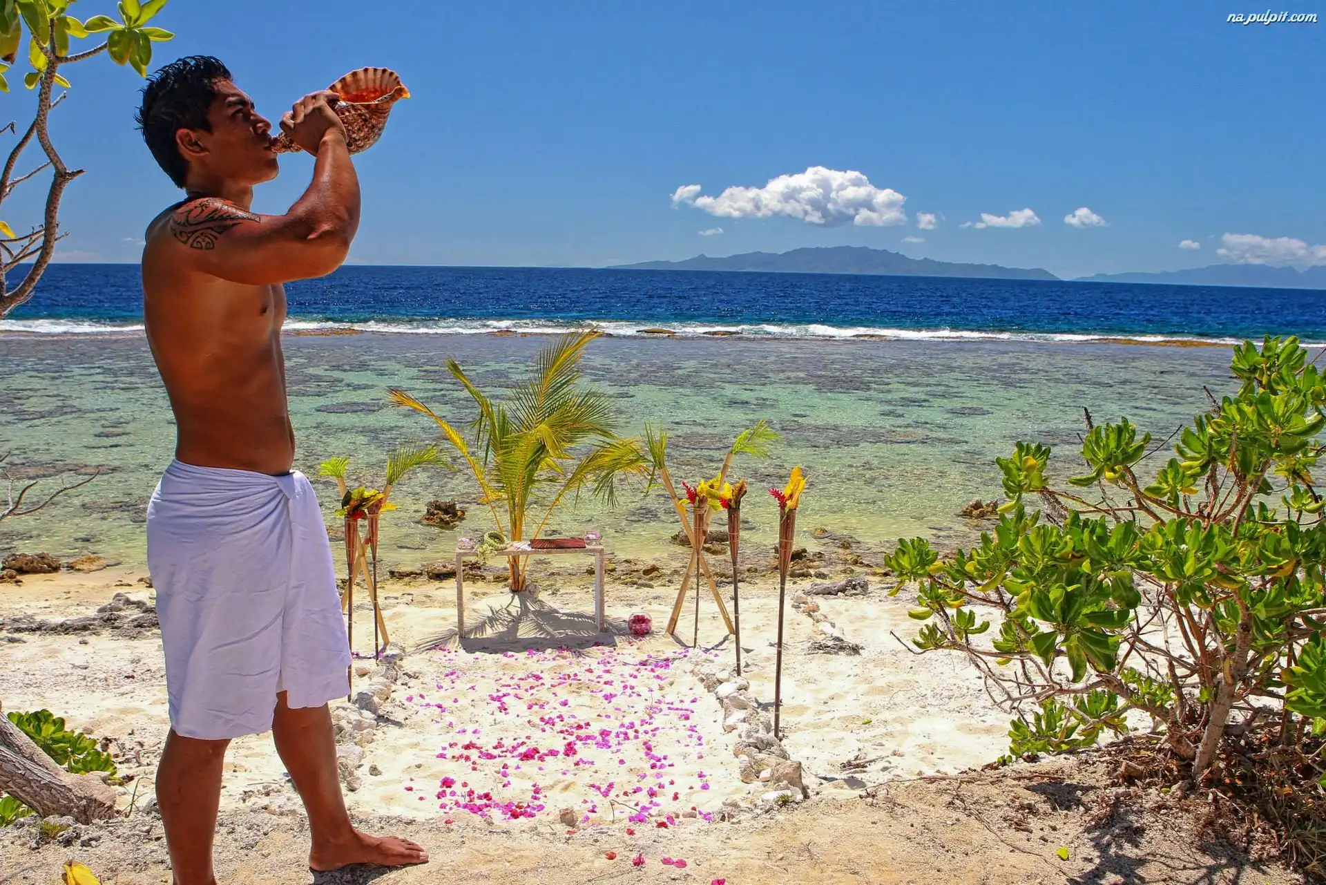 Muszla, Rośliny, Morze, Plaża, Mężczyzna