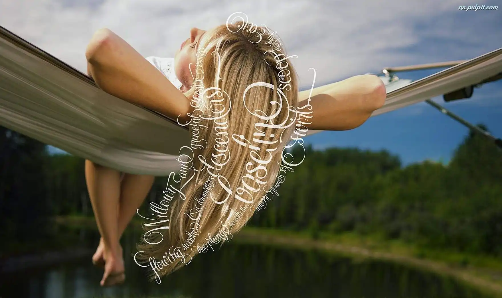 Myśli, Blondynka, Dziewczyna, Hamak, Napisy