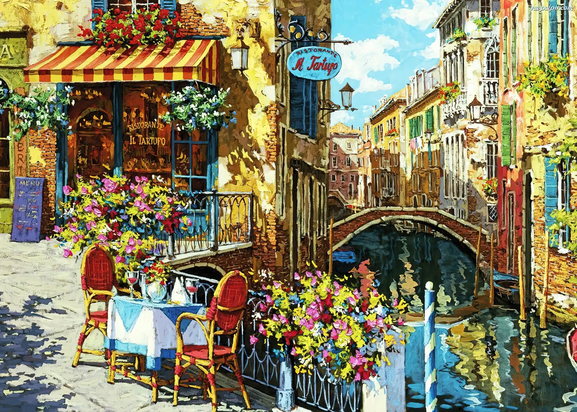 Kanał, Na, Ulicy, Most, Kwiaty, Domy, Kawiarenka, Sklepy Na Pulpit