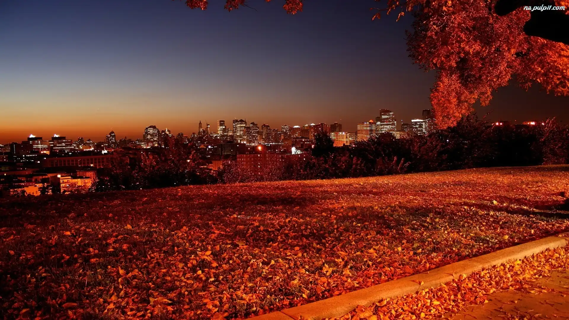 Na, Jesień, Liście, Miasto, Widok, Wieczór Na Pulpit
