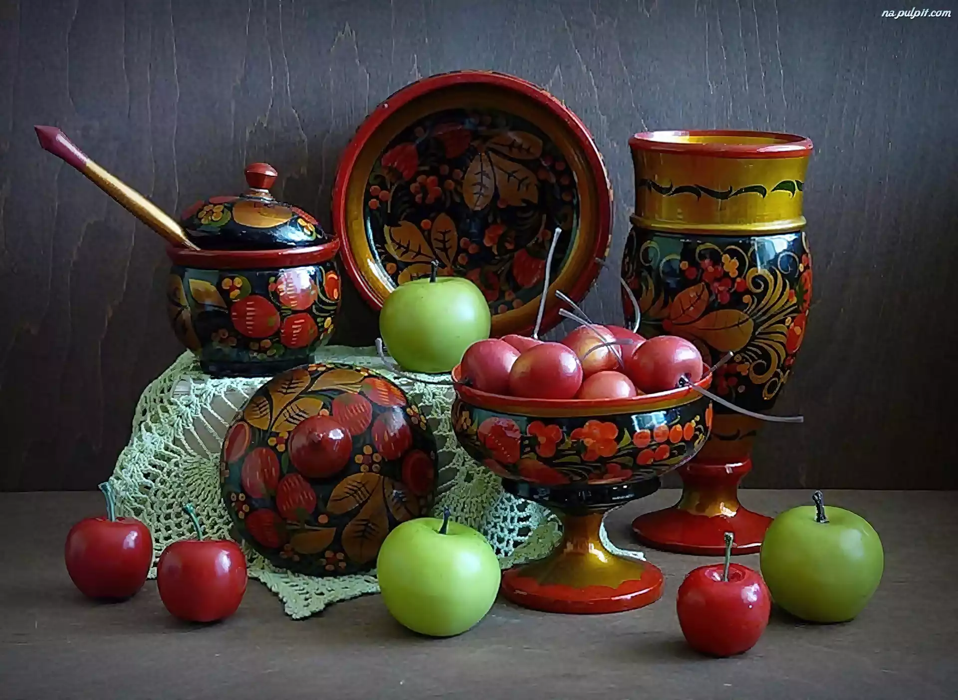 Naczynia, Czereśnie, Jabłka, Ozdobne