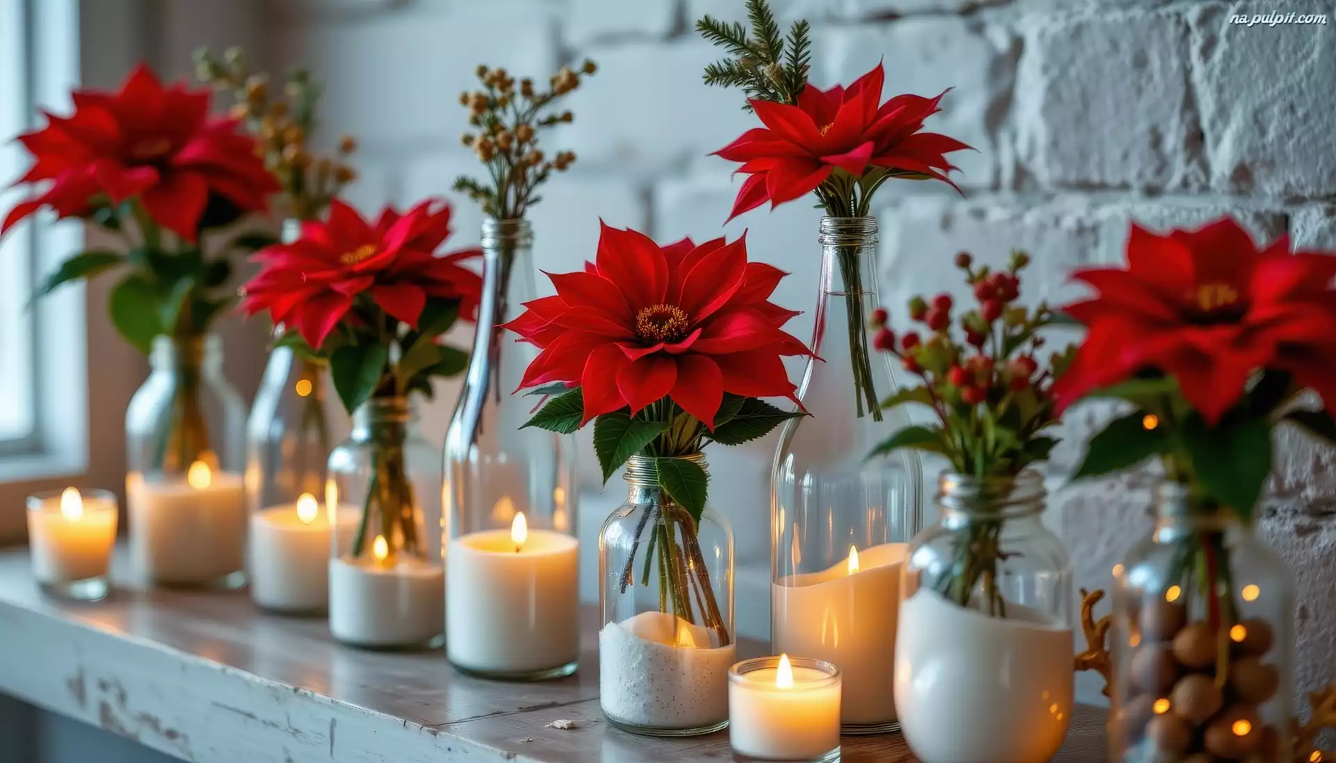Szklane, Kwiaty, Åšwiece, Naczynia, Gwiazda betlejemska, AI Na Pulpit