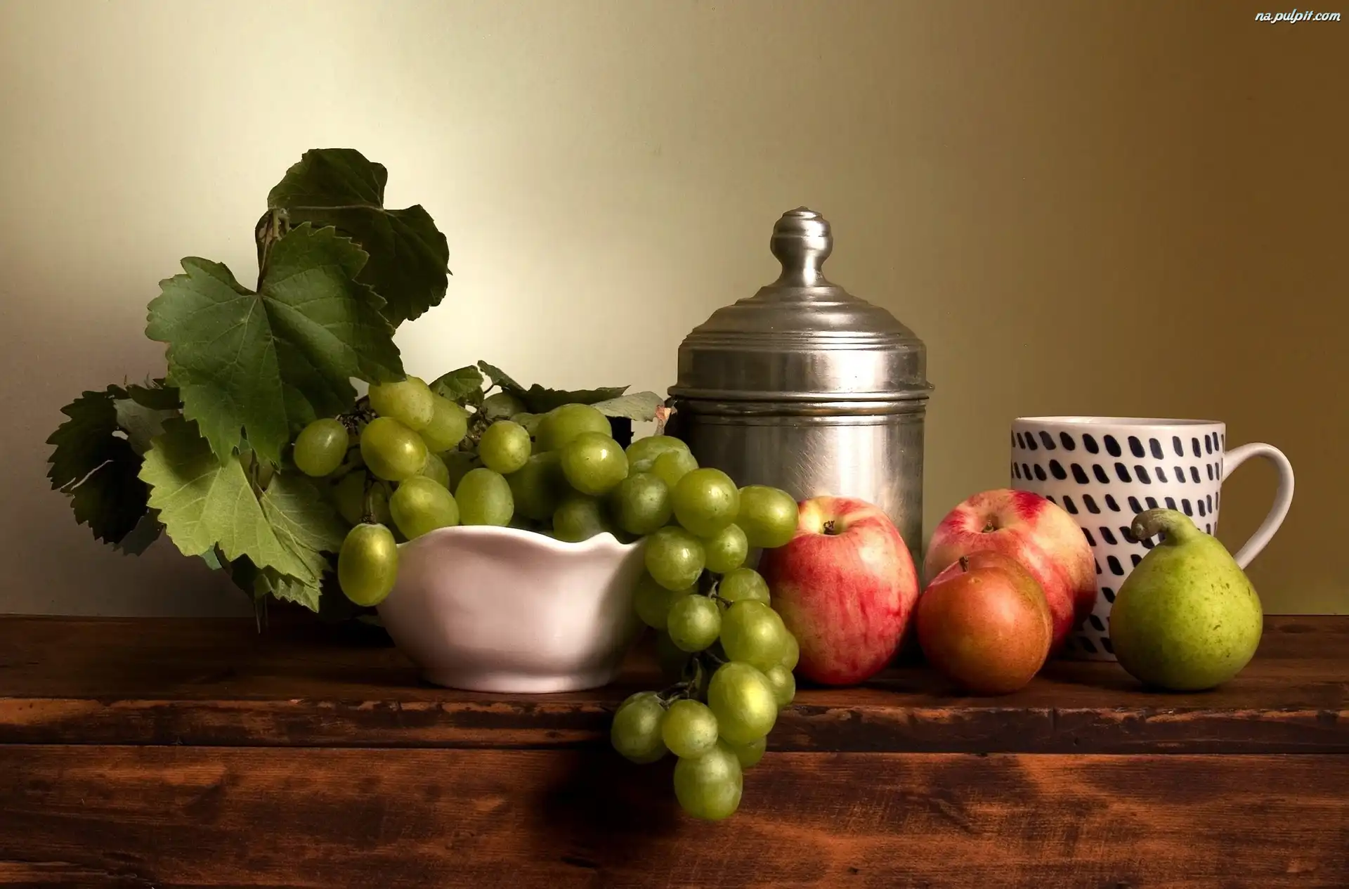 Naczynia, Jabłka, Winogrona, Gruszka Na Pulpit