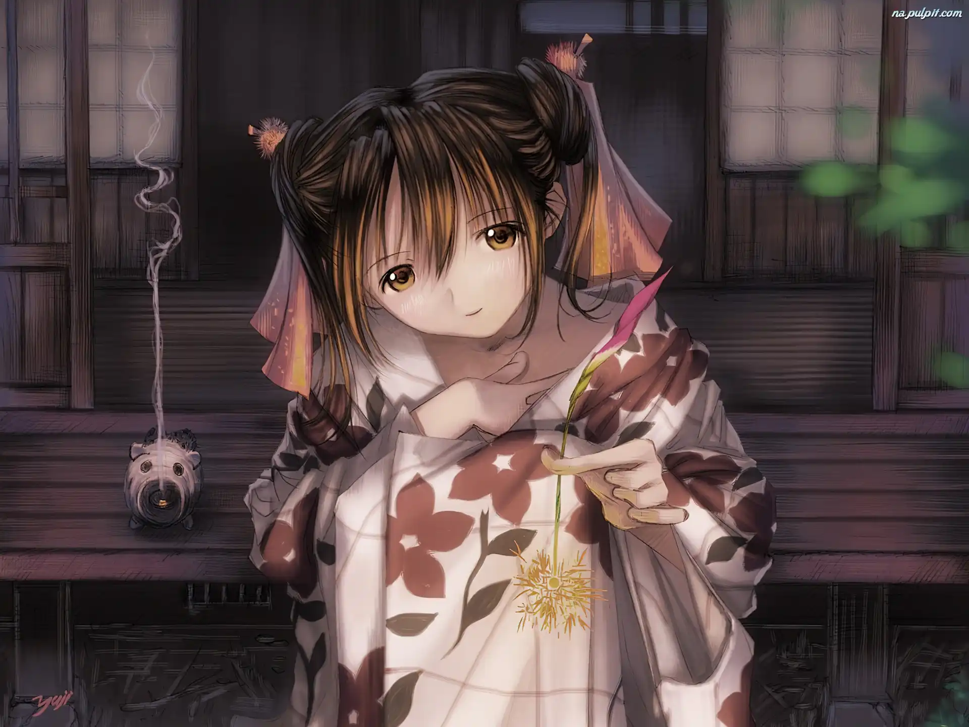 różowe włosy, Nagko, sukienka instrumenty, Nagko, dziewczyny strój w kwiaty, Nagko, warkocze zielone włosy, Nagko, sukienka liście, Nagko, świnka