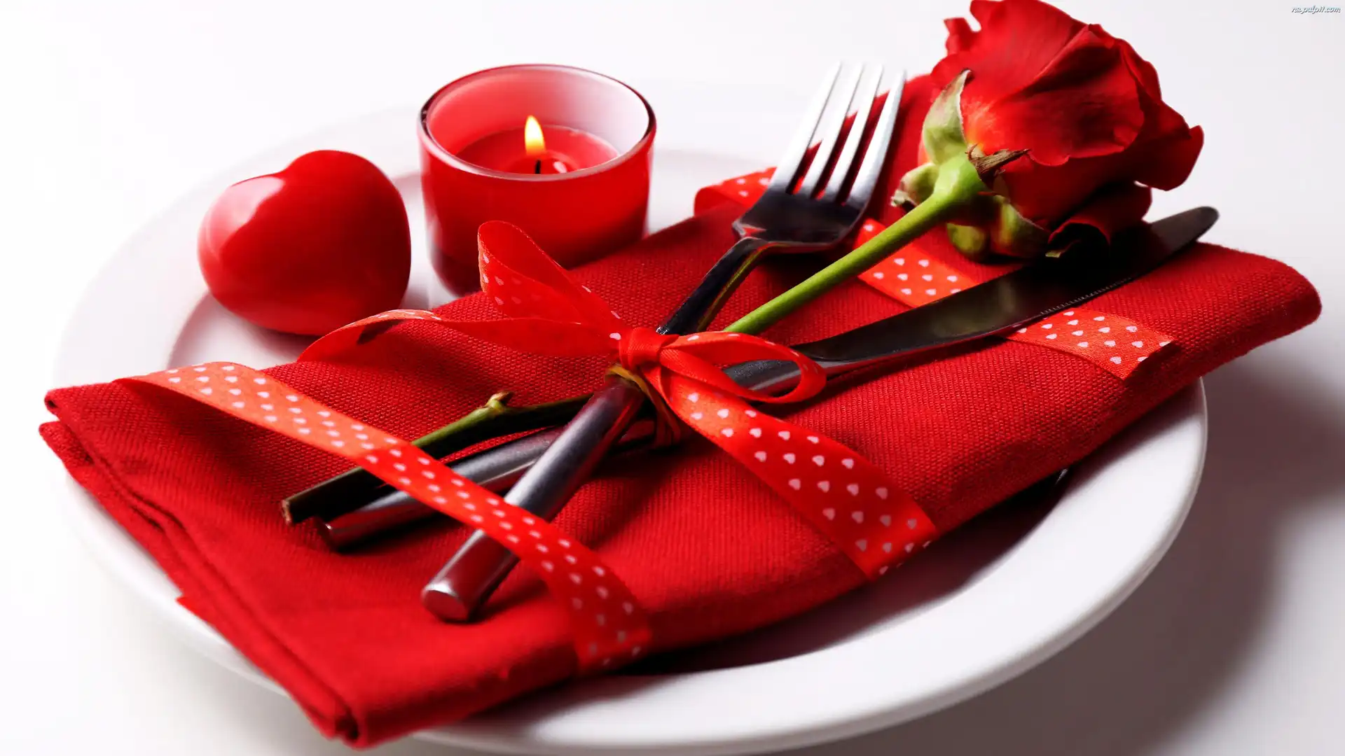 Serduszko, Nakrycie, Świeca, Róża, Sztućce, Walentynkowe, Serwetka Na Pulpit