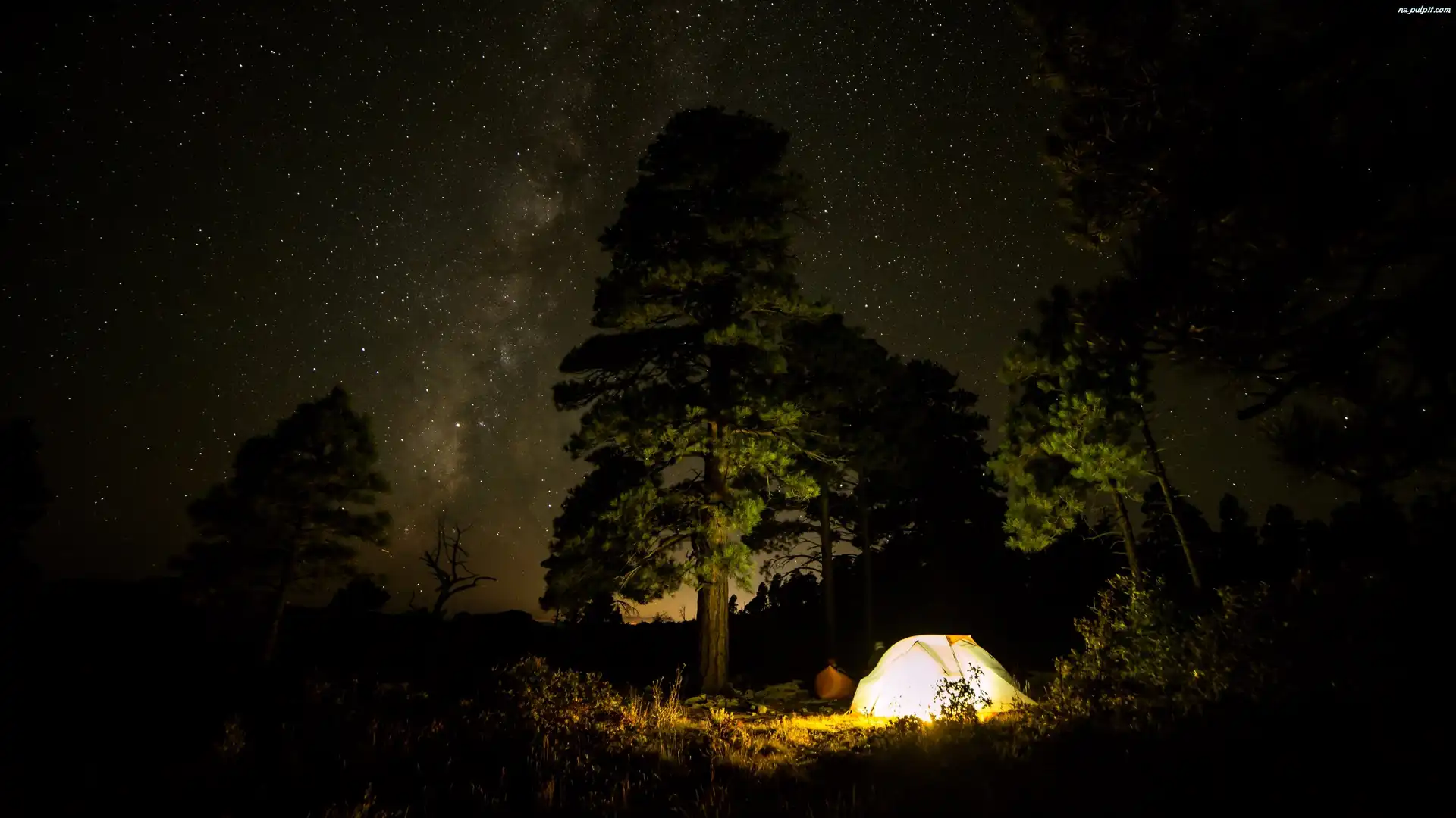 Namiot, Drzewa, Noc, Gwiazdy Na Pulpit