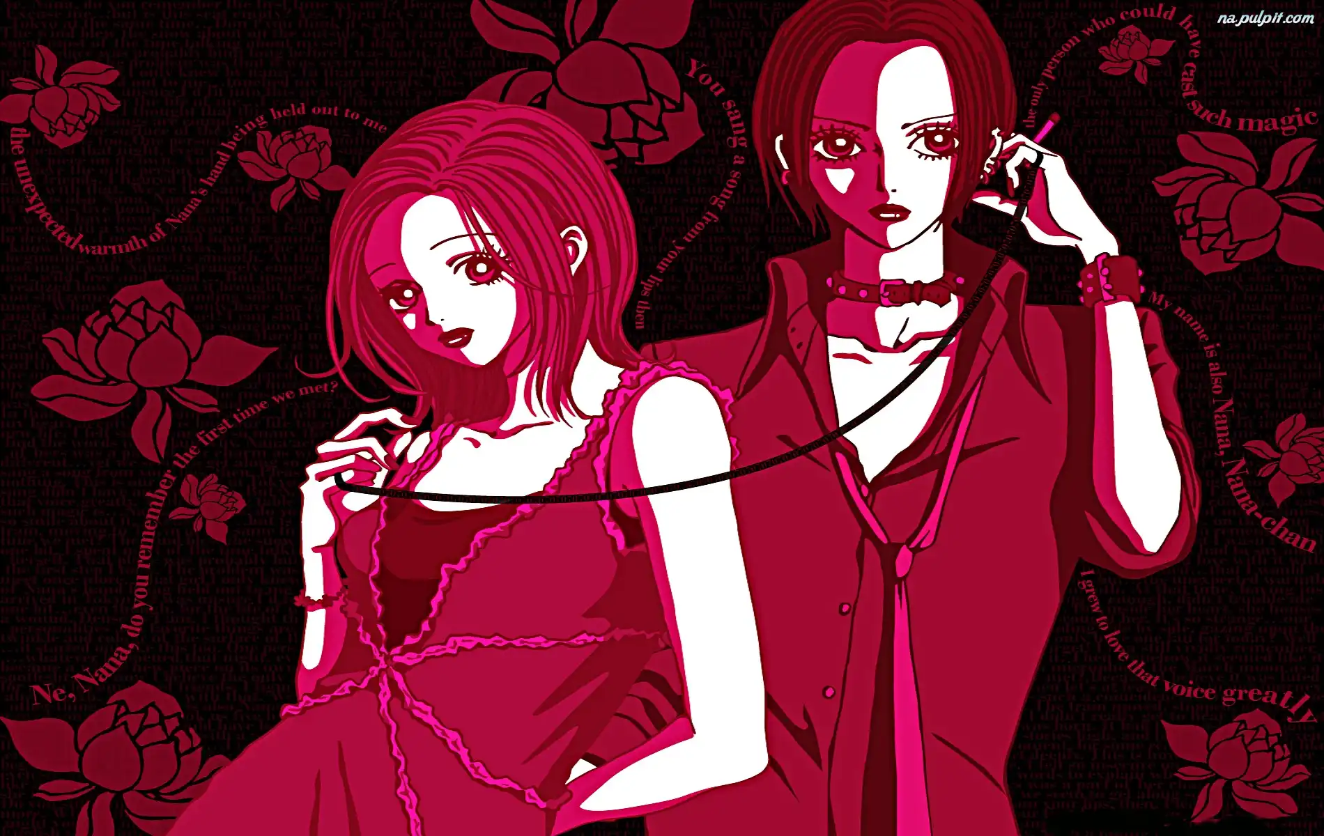 Nana, Hachi instrument, Nana, marynarka latarnia, Nana, budynek kolczyki, Nana, kolorowy tatuaż Nana, Anime pierścień, Nana, gitara rękawiczki, Nana, kozaki oczy, Nana, torebka golf, Nana, duże oczy żółte bolerko, Nana, czerwona obroża pasek, Nana, czerwone włosy dziewczyny, Nana, anime ciemne włosy, Nana, profil twarzy pałeczki, Nana, okulary