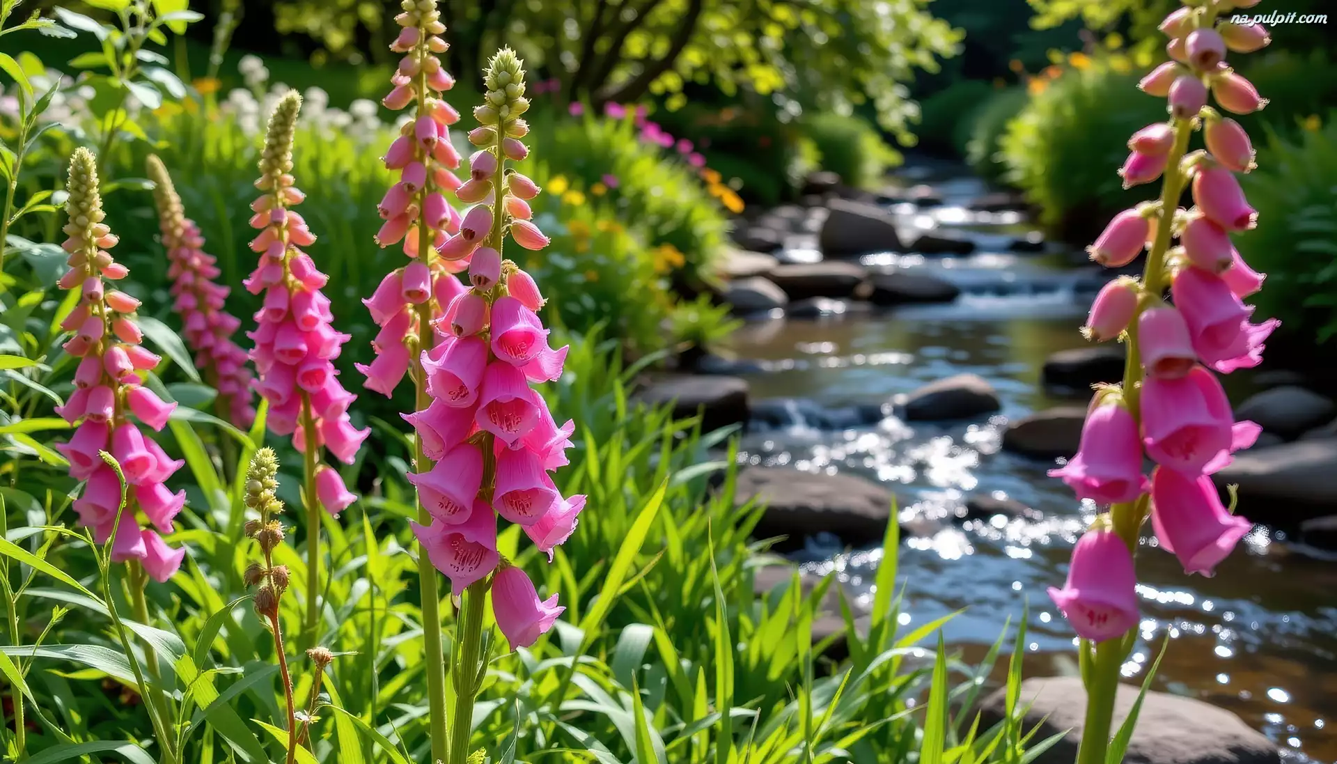 Potok, Naparstnica, Różowe, Grafika, Kwiaty Na Pulpit