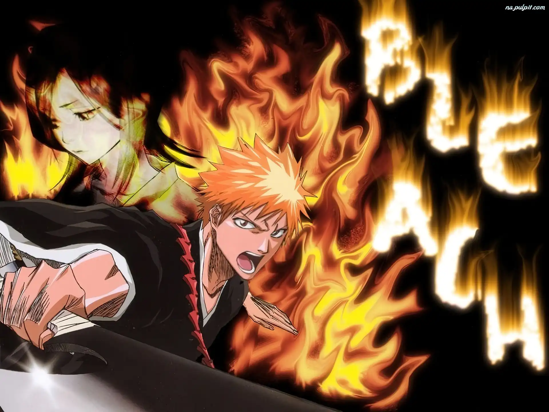 napis, katana, ludzie, Bleach, płomienie Na Pulpit