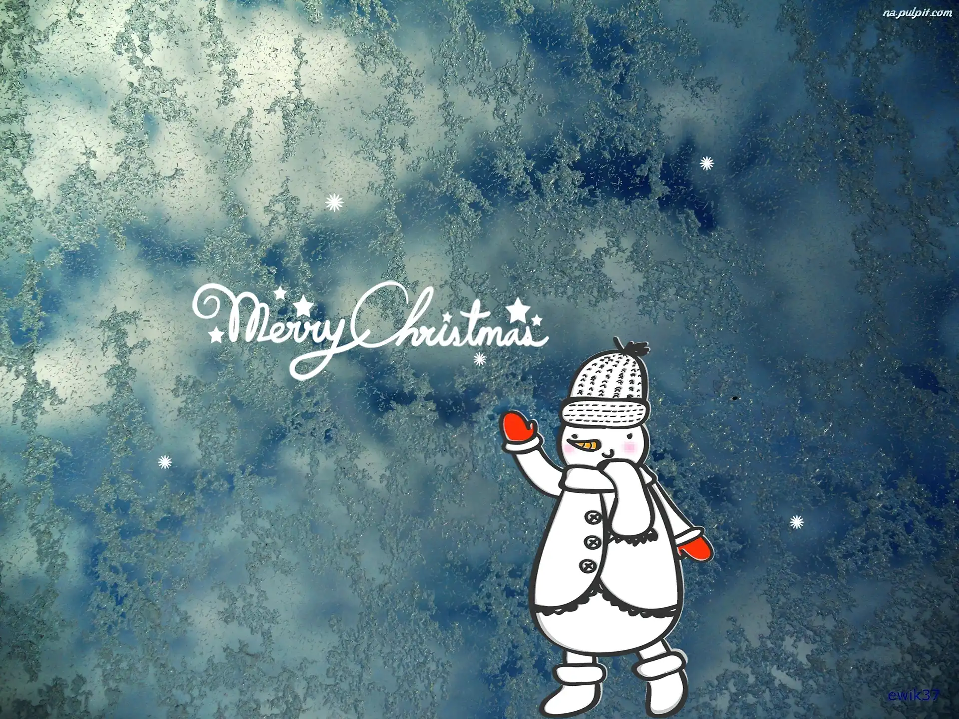 Napis, Gwiazdy, Mróz, Chmury, Bałwan Na Pulpit