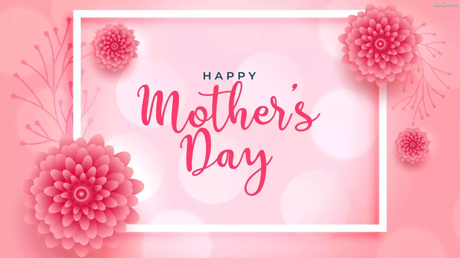 Czerwone, Napis, Dzień Matki, Biała, Kwiaty, Ramka Na Pulpit