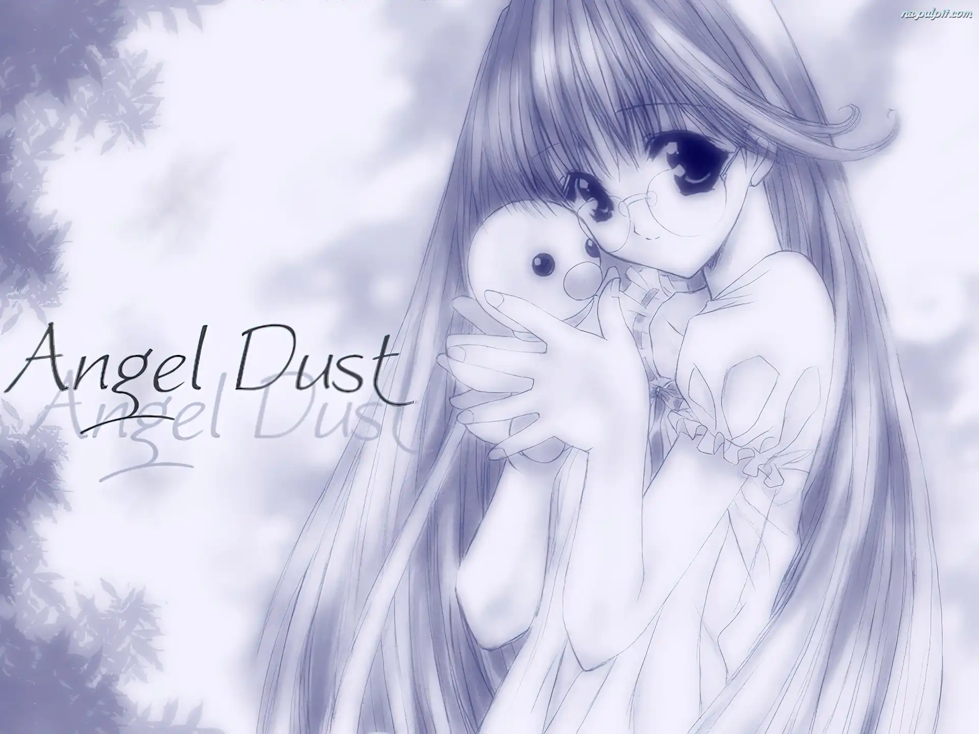 Angel Dust, Księżyc napis, Angel Dust, dziewczyna kapelusz, Angel Dust, dziewczyna twarz, Angel Dust, napisy
