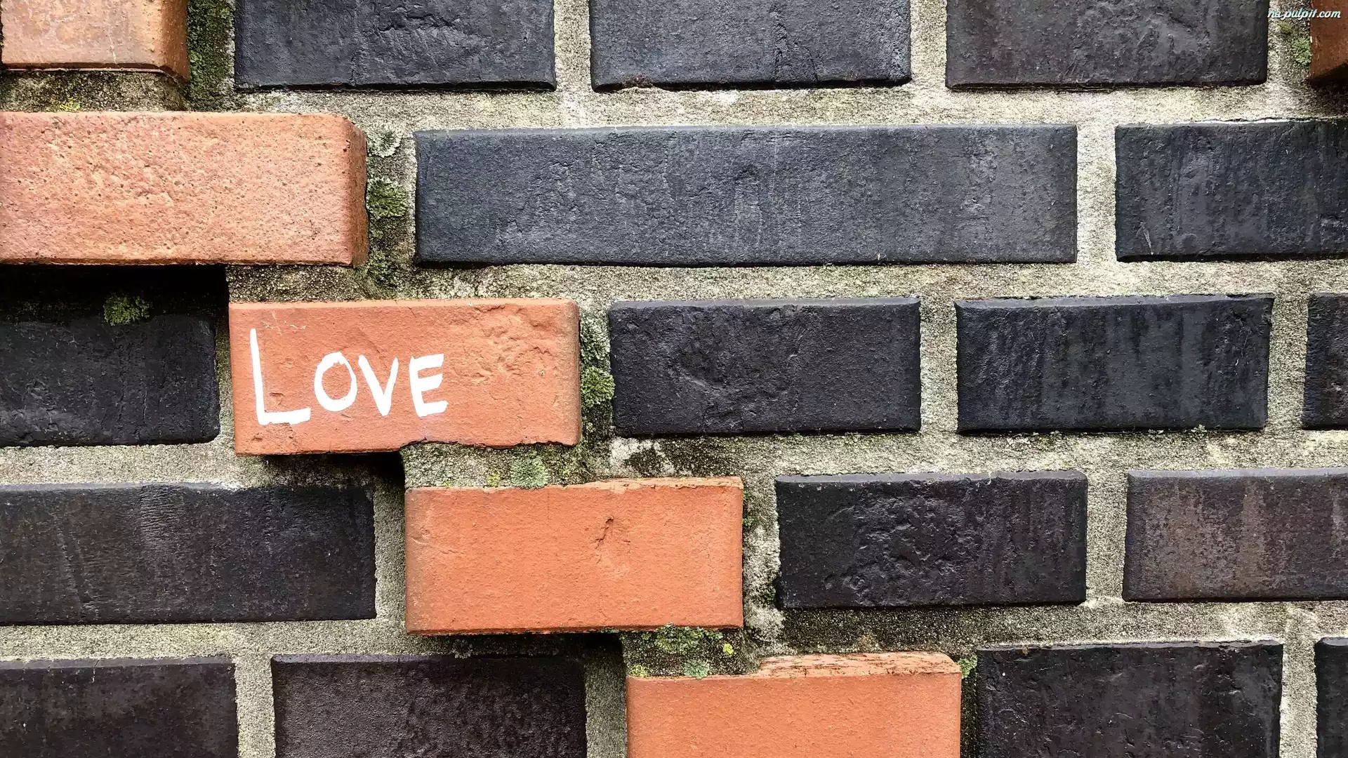 Love, Cegły, Ściana, Napis, Barwa, Miłość
