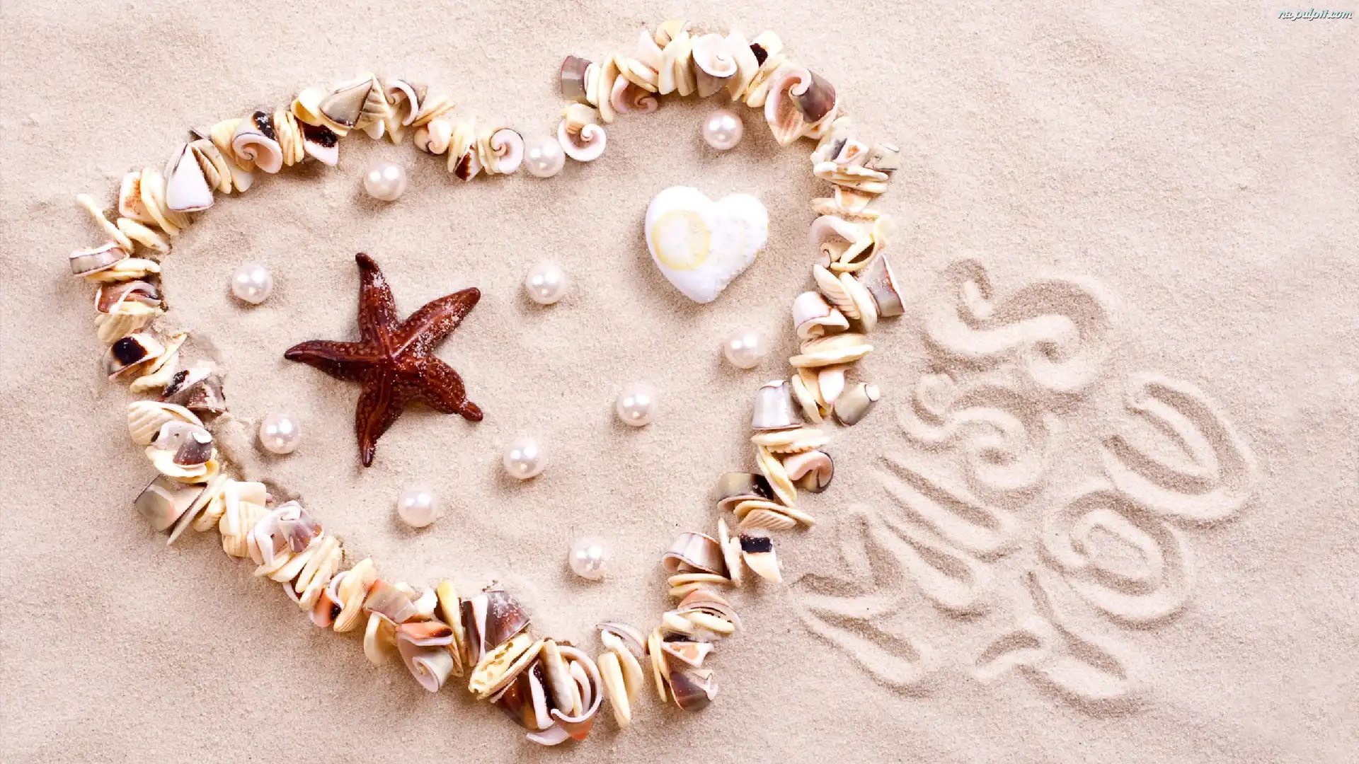 Napis, Piasek, Muszelki, Serce Na Pulpit