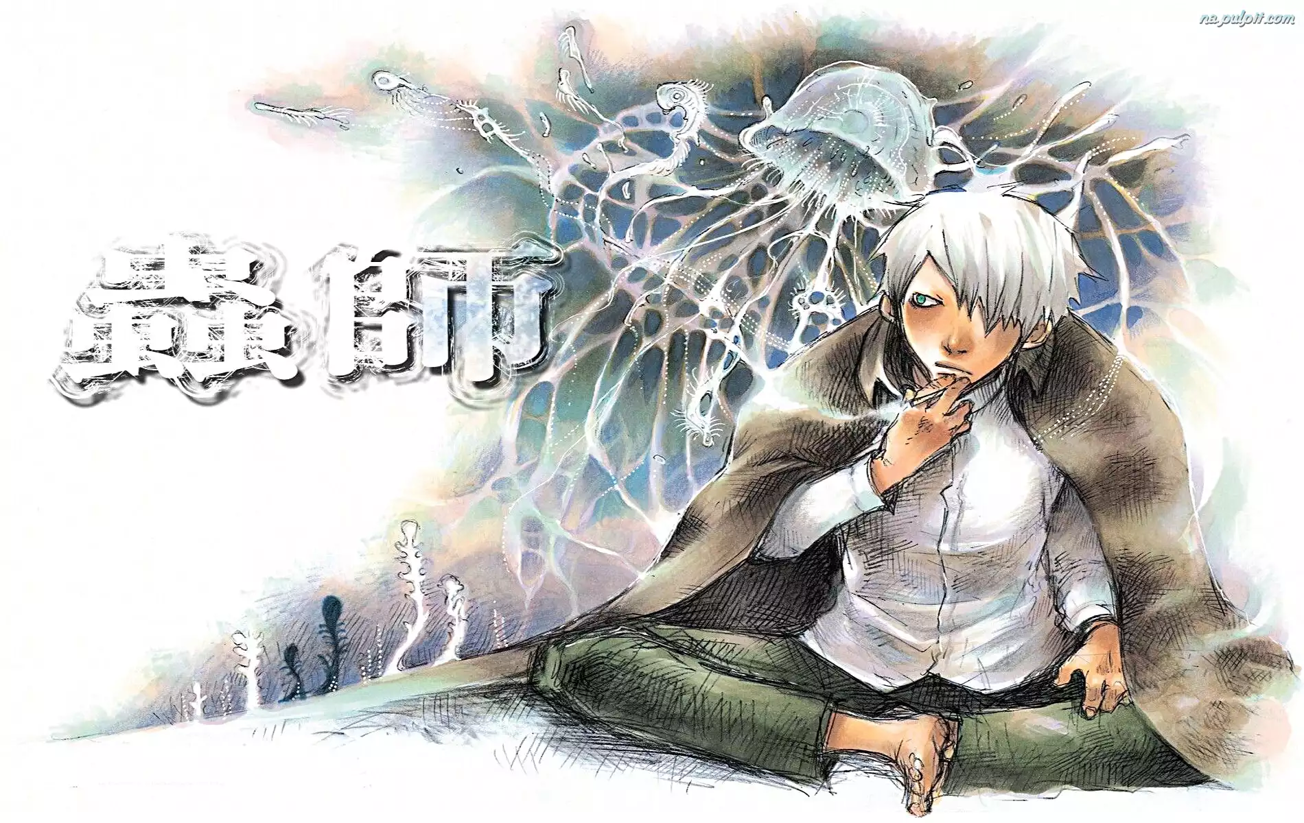 napis, chłopak, anime, Mushi Shi, kanji Na Pulpit