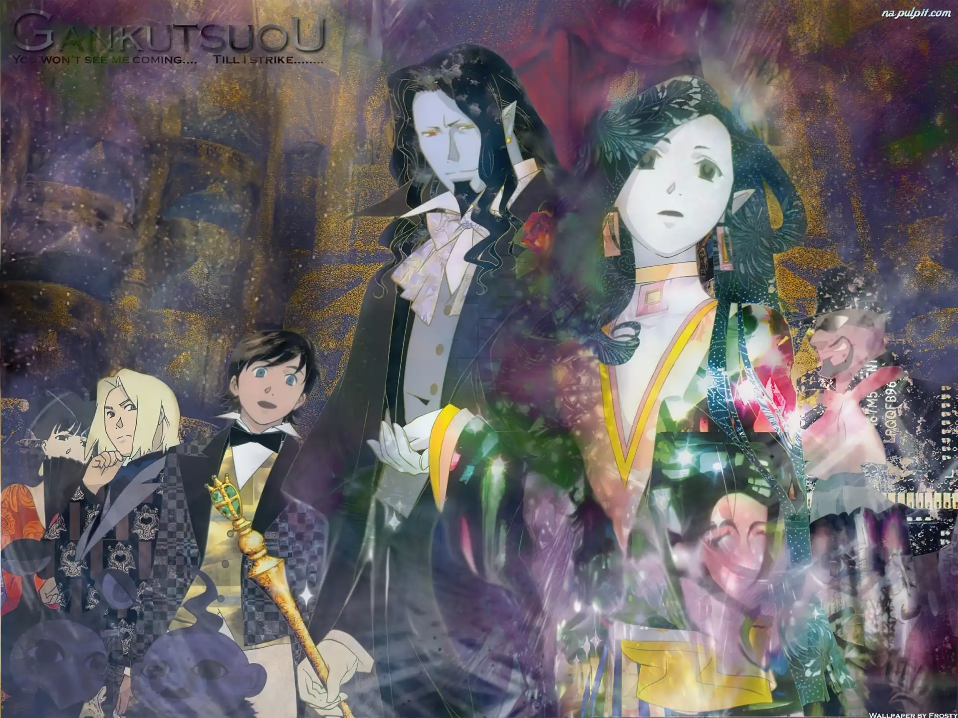 Gankutsuou, taras, kobieta, ptaki witraż, Gankutsuou, zegar kapelusz, ludzie, Gankutsuou, napis Gankutsuou, facet, peleryna, napis karczma, Gankutsuou, ludzie kapelusz, wzory, Gankutsuou, ludzie napis, postać, skrzydła, Gankutsuou, chmury Gankutsuou, postać człowiek, napis, Gankutsuou, ręce złoto, ludzie, Gankutsuou, berło napisy, bal, Gankutsuou, ludzie wzory, postacie, Gankutsuou, napisy słońce, Gankutsuou, ludzie księżyc, Gankutsuou, ludzie