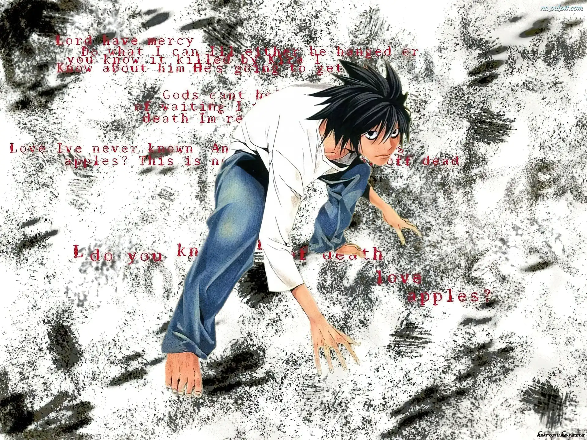 napisy, chłopak, Death Note, stopy