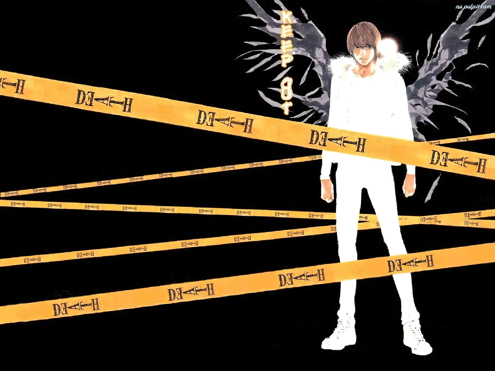 napisy, skrzydła, postać, Death Note, taśmy